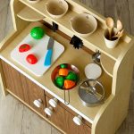 几帳面な男の子にはぴったりのままごとキッチン。本物そっくりのキッチンは、高さ約80cm。3つのコンロや取り外しできるまな板、取手、引き出し、戸棚など細部にこだわった作りが魅力的です。収納スペースが多いので、無理なく自分でお片付けできるのも、おすすめポイントとなっています。