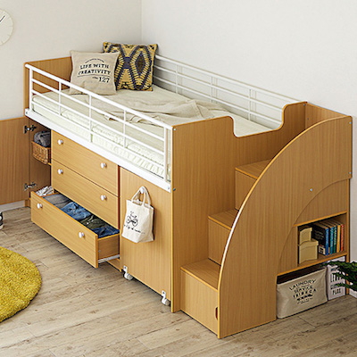またベッド周りに物を収納することが可能ですので、部屋の中が散らかる心配も減ります。