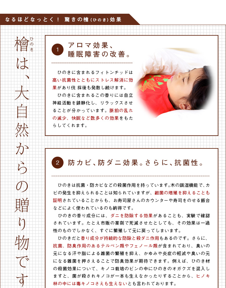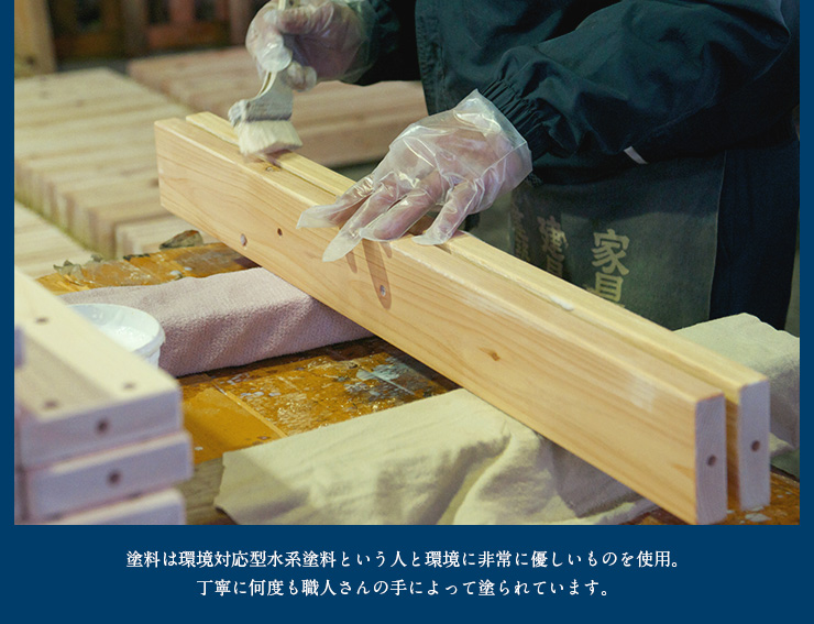 | 材質 | 原材料:檜(熊本県産檜) 塗装:植物系自然塗料(F★★★★) すのこ:桐 |