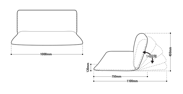 | サイズ | W100 × D75~110 × H12~45cm 座面の厚さ12cm 座面奥行き55.5cm |