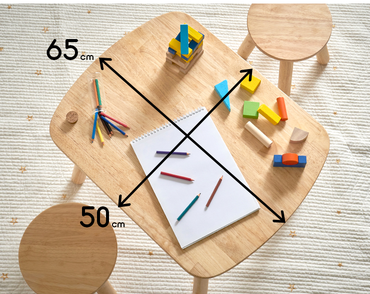 | サイズ | テーブル:W65 × D50 × H46.5cm チェア:W25 × D25 × SH29cm |