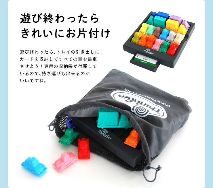 | TRAFFIC JAM LOGIC GAME ThinkFun RUSH HOUR(ラッシュアワー) 論理的思考を育むボードゲーム 大混雑の駐車場で、他の車を移動させて赤い車を脱出させよう!論理的思考で問題を解決する力を育む、世界で人気の思考型パズルゲーム。問題のカードは4つの難易度に分かれており、お子さま~大人の方まで楽しめる問題を計40問収録しています。 ■遊び方 問題カードを選び、カードの通りに車を配置しましょう。赤い車をこの駐車場から脱出させるために、効率よく他の車も動かします。 ■遊び終わったらお片付け 遊び終わったら、トレイの引き出しにカードを収納して、すべての車を駐車させよう!専用の収納袋が付属しているので、持ち運びも出来るのがいいですね。 ■安心・安全のCEマーク ヨーロッパ(EU)における法的規則に対する適合性表示マークである「CE」の認定商品。日本製品の安全基準より高いとも称されるCEマークの製品の安全性は、認定機関による厳格な試験で証明されています。 ■プレゼントにも最適なパッケージ お子さまのお誕生日やクリスマスのプレゼントにも最適。脳を活性化させる知育玩具なので、お子さまだけでなくママにも喜ばれるギフトです。 ※商品の仕様・内容物は予告なく変更する場合がございます。 | |