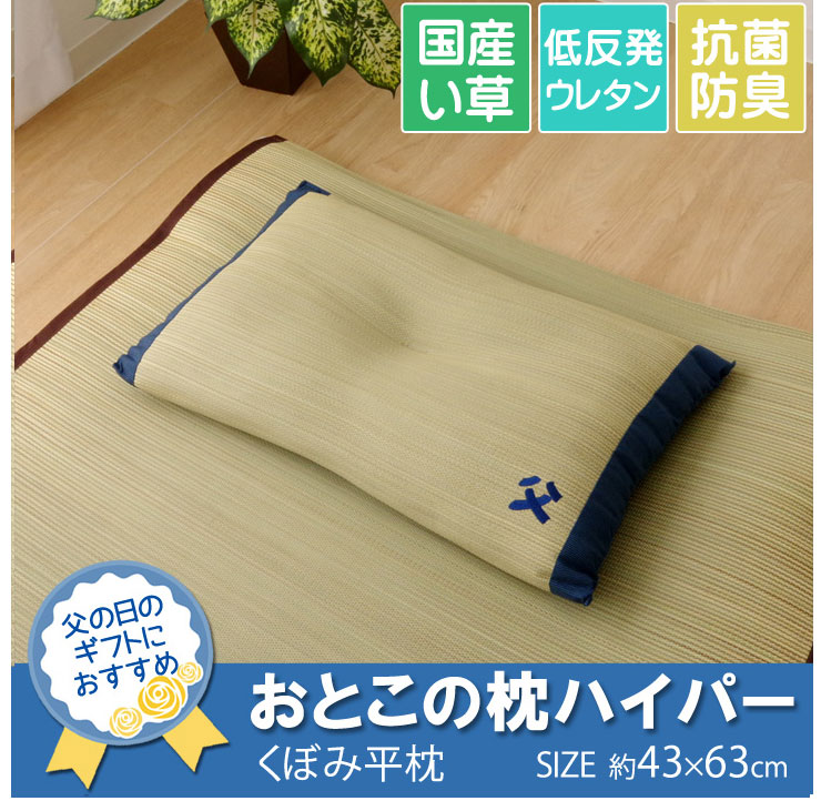| 国産のイ草を使用したイ草枕です。より頭にフィットするよう、枕の中心部分に「くぼみ」をつくりました。 快眠い草の効能として 1..綿の約2.5倍の吸湿力 2..蒸れにくい。汗による湿気を吸うことにより温度を下げ快適な就寝を促します。 3..汗のにおいを軽減。汗のにおいの元となる化学物質を90%以上抑えます。などがあります。 国産(九州産)のしなやかなイ草を使用していますので、柔らかく、すべすべしたとした肌触りです。 中材には低反発ウレタンチップを使用しています。柔らかすぎずヘタリにくく、型崩れしにくいのが特長です。 い草の表面に天然青森ヒバ加工を施しています(抗菌・防臭効果)。青森県のヒバの木から抽出した「ヒバ油」をメーカー独自の技術で材料や商品に加工しました。「ヒバ油」には、ヒノキチオールという天然物質としては極めて抗菌性の高い成分が含まれ、医療や食品など多分野で利用研究が進められています。 ※自然素材であること、また職人が一つ一つ手作業にて加工を行うため、形状のバラつきや表示サイズと多少異なることがあります。ご了承下さい。 | |