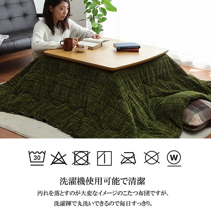 | 無地調 こたつ布団 約190×190cm 落ち着きのある色合いでお部屋をあたたかくコーディネート ■ あたたかみのあるカラーを使用したこたつ布団です。 ■ 表地は凸凹感を持たせボコボコとしたタッチ感が特徴です。 ■ 裏地にはなめらかな肌触りのフランネルを使用しています。 ■ 薄手なので折りたたんでもかさばらず、コンパクトに収納できます。 ■ 布団の内側に紐を付けることにより、布団と台がずれないようにしました。 ■ 豊富なカラーバリエーション ※こたつ本体、敷き布団等は別売りとなりますのでご注意ください。 | |
