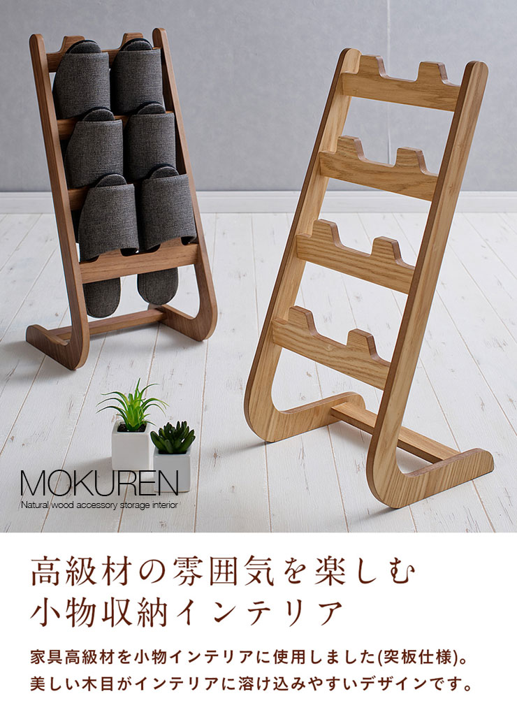 | MOKUREN(モクレン) スリッパラック RF-031WN/RF-031NA ・インテリア雑貨 MOKUREN Series ・高級材の雰囲気を楽しむ小物収納インテリア。家具高級材で知られるタモ天然木を小物インテリアに使用しました(突板仕様)。美しい木目がインテリアに溶け込みやすいデザインです。 ・北欧家具との相性も良く、ダイニングからリビングまで家中どこでも違和感なくモダンな雰囲気を演出いたします。 ・生活感が出てしまいがちな小物収納ですが、高級材タモ突板を使用することによりワンランク上のインテリア空間を演出。 ・小物収納を置く場所はどうしても、日頃よく使うスペースになってしまいます。美しい高級材の木目が、生活感を隠してオシャレに空間を演出します。 | |