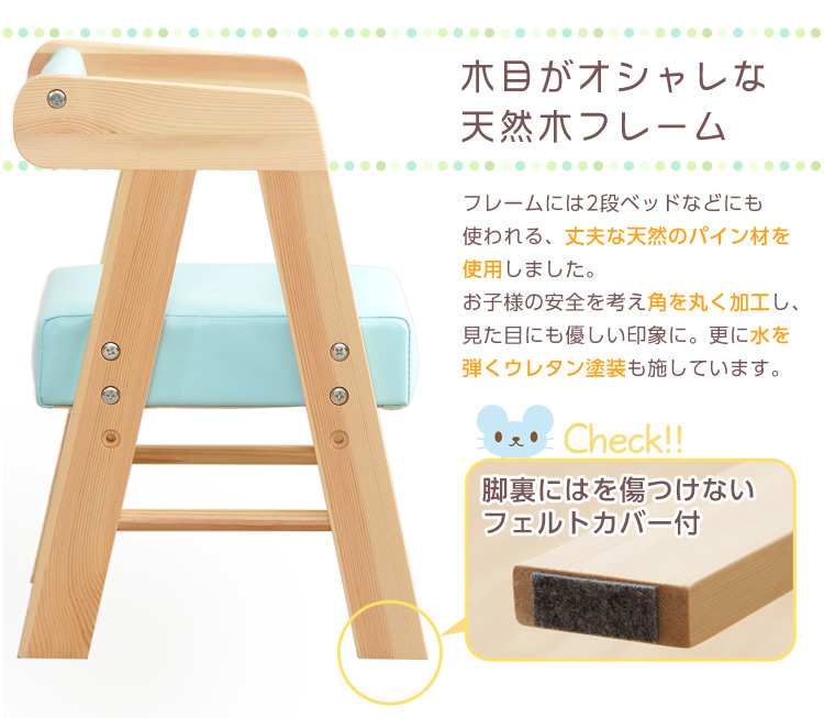 | 素材 | フレーム:天然木(パイン材)、ウレタン塗装 座面:ウレタンフォーム、PVC |