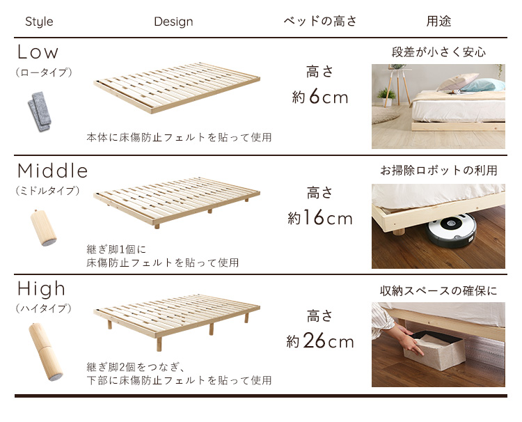 | 素材 | フレーム:天然木(パイン材) すのこ:積層合板(LVL) |