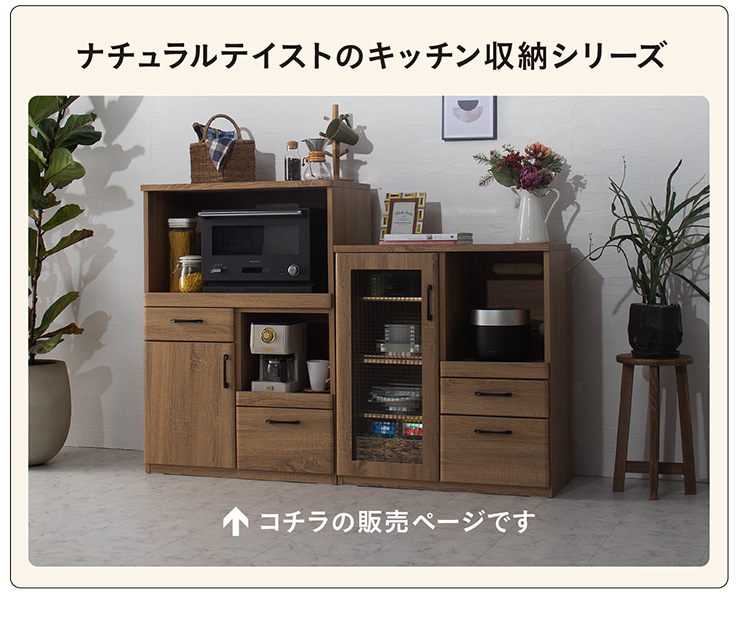 | 多機能の収納スペース食器や家電など1台で収納 レンジボード 幅80cm COPAN(コパン) ■すぐに使える完成品 組立が苦手な方や面倒な方におすすめの完成品です。届いたその日からご使用できます。 ■木の質感に近づける3Dシート 立体的な印刷を施した強化紙仕様となります。紙の材質ですが、より木の質感に近づける技術です。 食器や家電など1台で収納、コンセントが使えて便利 ■オープンラック 家電を置いたまま引き出すことが可能な棚板。コンセント付きでキッチン家電の設置が可能。通気口があるのでこもりがちな熱気や湿気を逃がせます。オープン部には2口コンセント付き。 ■片開き収納棚(可動棚板付) キッチン用品やワインボトルなど、普段のキッチンまわりの収納に大活躍します。 ■スライドレール引出し 引出しと、スライドカウンターは、全てフルオープンレールなので奥の物まで取り出せます。ストッパーもついてるので引き出しの落下も防ぐ仕様です。 ■使い方自由な天板 天板には小物のインテリアを置いたり、オープンラックと合わせて家電の設置も可能です。 ■見えない背面も綺麗な仕上がり | |
