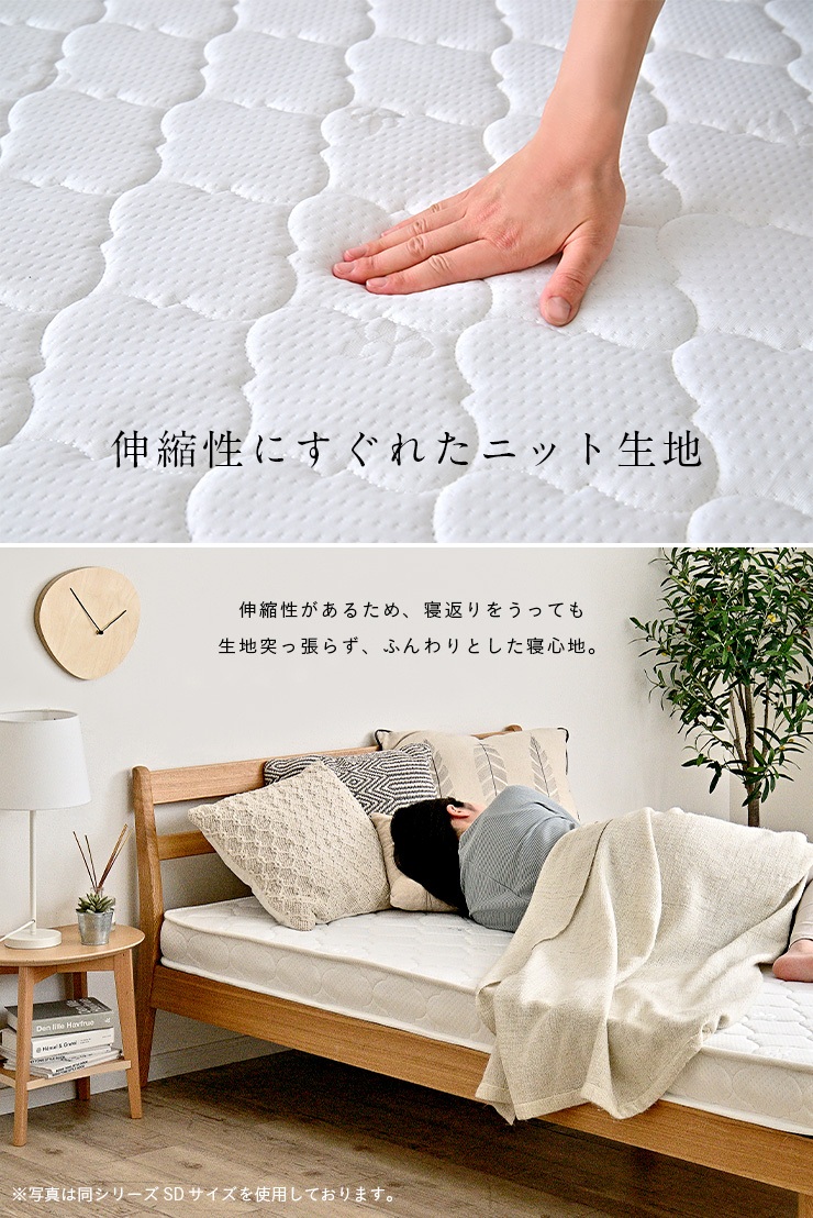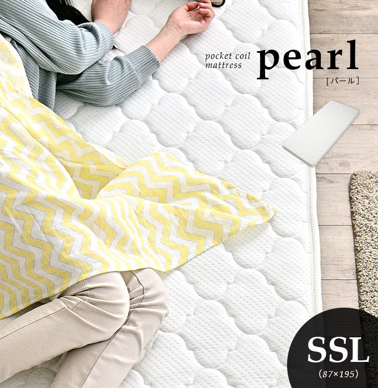 | pocket coil mattress pearl(パール) SSL シングルスリムロングサイズ 87x195cm 使いやすさと寝心地にこだわった、ポケットコイルマットレス 普通のベッドはもちろん、2段ベッドやシステムベッドなど、お子さま用のベッドにも使える厚さ12cmの薄型タイプ。身体にフィットするポケットコイル仕様で寝心地にもこだわりました。マンションなどの集合住宅でも搬入しやすい圧縮梱包でお届けします。 ■柔らかく身体を包み込む、ポケットコイル仕様 **********「ポケットコイル」の特徴 ********** ・コイルが1つ1つ独立していて、点で身体を支える ・体圧分散に優れている ・柔らかく、包み込まれるような寝心地 ・耐久性が高い ・横揺れしにくく、振動が伝わりにくい ■使いやすい、厚さ12cmの薄型タイプ 薄型なのでお子さま用のベッドでもお使いいただけます。薄いけれど、中身はしっかりとしたスプリングコイル仕様。なので底付き感はありません ■伸縮性にすぐれたニット生地 伸縮性があるため、寝返りをうっても生地突っ張らず、ふんわりとした寝心地。 ■コンパクトだから設置しやすい圧縮梱包 マットレスのような大きなものを、狭い玄関や階段、廊下や部屋の入り口を運ぶのはとっても大変です。圧縮梱包ならお部屋までの搬入がとってもスムーズに行えます。 ※圧縮袋は一度開封すると再圧縮できません。 ※開封する際はハサミを使用し、ケガ等に十分気をつけながら行ってください。 ※開封後約1日で本来の大きさに復元します。サイズには多少の誤差が生じる場合がございます。 ※マットレスを干す際、日光にさらし続けると変色を起こす恐れがありますので、ご注意ください。 ※布団乾燥機のご使用はお避け下さい。 ※普段のお手入れは、柔らかい布地で乾拭きしてください。 ※ご使用の際にはカバーや敷きパッド等を合わせてお使い下さい。 ※商品ページの画像内には一部サイズ違いのものを使用しております。 | |