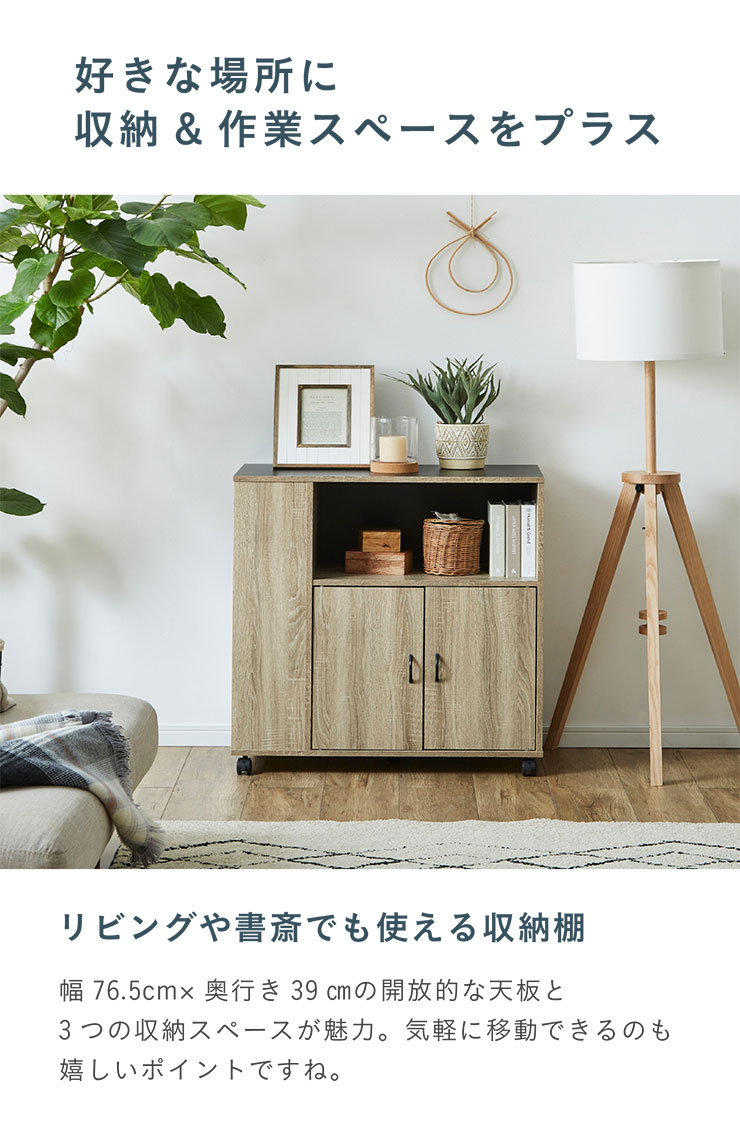 | キッチンカウンターで叶う、スマートライフ Kitchen counter Citron (シトロン) ■好きな場所に収納&作業スペースをプラス 幅76.5cm×奥行き39㎝の開放的な天板と3つの収納スペースが魅力。気軽に移動できるのが嬉しいですね。 ■一台でスッキリ、3つの収納スペース 1,作業台にもなる広い天板 2,サッと取り出せる天板下スペース 3,目隠しができる扉収納 4,高さのあるサイドオープン収納 ■おすすめしたい3つのdetail 1,シンプル&掴みやすい取手 2,キャスター付きで移動もラクラク ■シンプルでお洒落な2トーンカラー ■シリーズで合わせて、お部屋に統一感を ※こちらの商品はお客様組み立てとなります。 ※組み立て方や若干の個体差によって、表記サイズと完成形のサイズに多少の誤差が生じる場合がございます。予めご了承ください。 ※熱いものを置くときは、直接置かないように注意してください。 ※濡れた場合は長時間放置しないようご注意ください。 ※本商品の背面にはシートやエッジテープ加工がございません。予めご了承ください。 ※キャスター無しでの使用も可能です。その際は、床に傷がつく恐れがあるので、ご自身でフェルト等をご準備していただき、底面に貼っていただきますようお願い致します。 | |