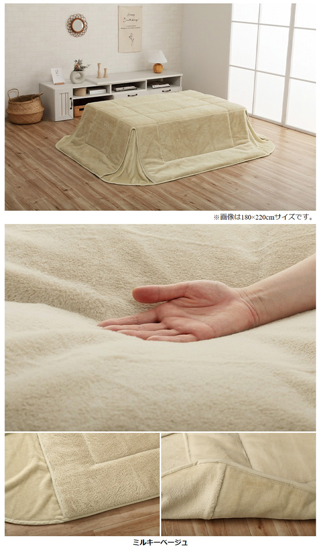 | ■大人かわいいシンプルデザインのラピアスシリーズです。ふわふわな極上のタッチ感で暮らしに幸せをお届けします。 ■場所をとらない省スペースタイプのこたつ掛け布団です。 ■表地にはフィラメント糸でふわふわなフェイクファーを使用しています。毛羽立ちが少なく、耐久性にも優れています。 ■フェイクファーは毛が抜けにくいマイヤー織りで、毛足の長さは長すぎず使用感がほどよい約10mmを採用しました。 ■裏地には柔らかく、肌触りの良いフランネル生地を使用しています。 ■中わたに抗菌防臭加工を施しました。 ※液温は40℃を限度とし、手洗いができる。(洗濯機は使用できません) ※干し方=日陰のつり干しがよい。 ※こたつ台、ラグは別売りです。 ※本商品は、同シリーズでも色味が異なる場合がございます。あらかじめご了承ください。 ※フェイクファーは、毛足の向きによって色の見え方が変わるのが特長です。 ※生産時期により同色でも若干色味が異なる場合がございます。 ※使い始めは遊び毛が出る可能性がございますので、ご使用前に掃除機でやさしく吸い取ってください。 ※滑らかな肌触りが特徴の製品です。ご使用中の転倒にご注意ください。 ※掲載写真は表記サイズと異なる場合がございます。 ※画面上のカラーはご使用ブラウザやモニターの設定により、実物とは若干異なる場合がございます。あらかじめご了承の上、ご注文をお願いいたします。 ※ふとんをやぐらの中に押し込んだり、座イスやイス全体をこたつの中に入れたまま使用しないでください。ふとんがヒーターに当たらないようにご使用ください。(火災の原因になります)ご使用により、ふとんが焦げた場合につきましては、返品・交換を承ることができませんので、あらかじめご了承ください。 | |