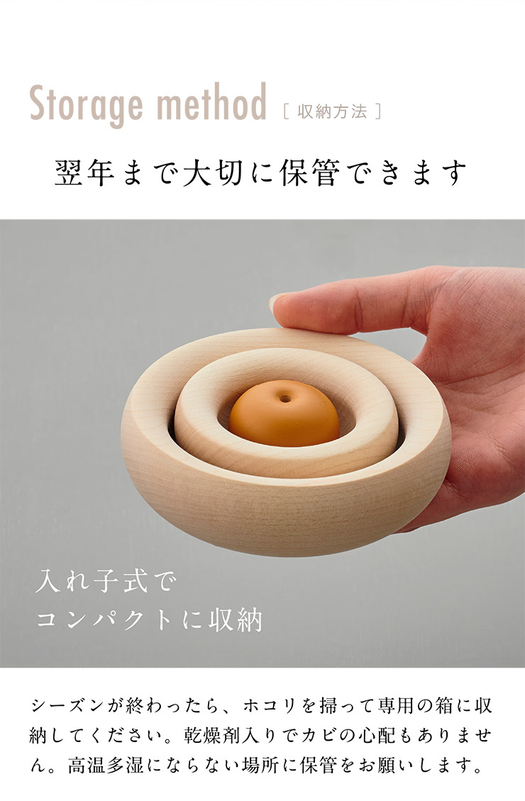 | “きっといい年” きのいい鏡餅 桜プレート付 ●柔らかなメイプル無垢材を活かした、毎年使える日本製の鏡餅 1年のはじまりに欠かせない鏡餅。木肌の色を生かしたシンプルでモダンなデザインが、和室にも洋室にも馴染みます。 ●大分県日田の木工職人がひとつひとつ手作りしています 約500年の歴史を持つ林業の町・大分県日田市。林業に適した気候・土壌と、筑後川の水運に恵まれ、林業や製材のみならず、家具や下駄をはじめとする木工業も盛んに行われています。 ●木にも環境にも優しい塗料を使っています ●アレンジの幅が広がる桜プレート ●入れ子式でコンパクトに収納翌年まで大切に保管できます ※一つ一つ手作りのため、表記サイズと完成形のサイズに多少の誤差が生じる場合がございます。予めご了承ください。 ※カビ、または木の変形、変色が早まる恐れがあるため、使用時、保管時ともに、高温多湿、直射日光を避けてご愛用ください。 ※先端がとがっている部品がありますので注意しご使用ください。 | |