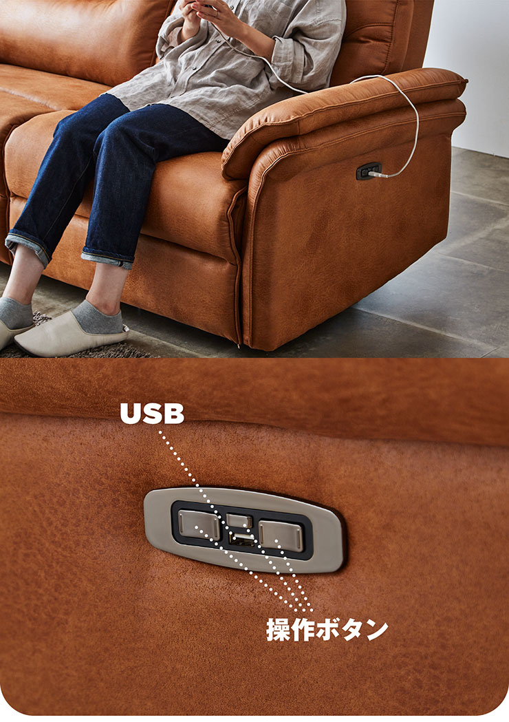 左右独立電動リクライニングになっていて、ボタンひとつでお好みの角度でくつろぐことができます。