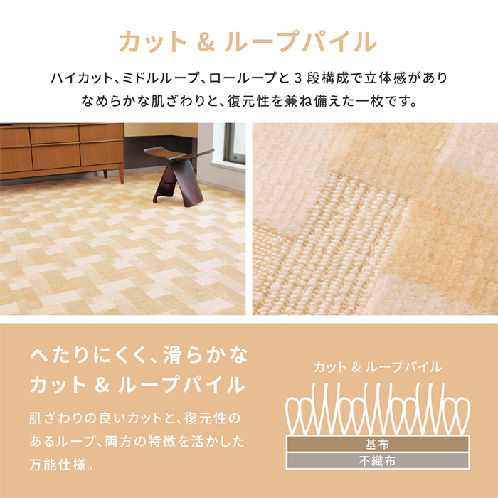 | レトロかわいい日本製抗菌カーペット レトロなデザインがおしゃれなカーペット。 色合いも明るく、子供部屋やリビングなど、お部屋のイメージを変えたい方におすすめ。 単色ながら、ハイカット、ミドルループ、ローループと3段構成で立体感がありタッチ感も楽しめます。 敷詰めではなく、ラグとしてもお使いいただけるため、大きいサイズのラグをお探しの方にも◎ ■抗菌・防臭 ■ホットカーペット・床暖房OK ※詳細画像をご確認ください。 | |
