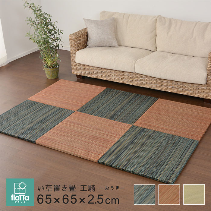 | スキマ・フラット・置きタタミ 『その名は、フラッタ!』 床に並べるだけで簡単に畳のスペースが作れる「置き畳」です。 軽量なので女性1人でも取り扱いがラクラク。 ちょっとした隙間スペースを有効活用できるのでキッズ向けのプレイマットからシニアのお昼寝、お父さんお母さんのごろ寝スペースまで簡単に作れます。 適度なクッション性があり、階下への配慮や床のキズ防止など、子育て中にもうれしい便利グッズ。 天然い草を使用し、等間隔な織り方でサラッとなめらかな手触り。 い草の空気清浄や湿度調整機能で年中快適です。 ※ 詳細画像をご確認ください。 | |