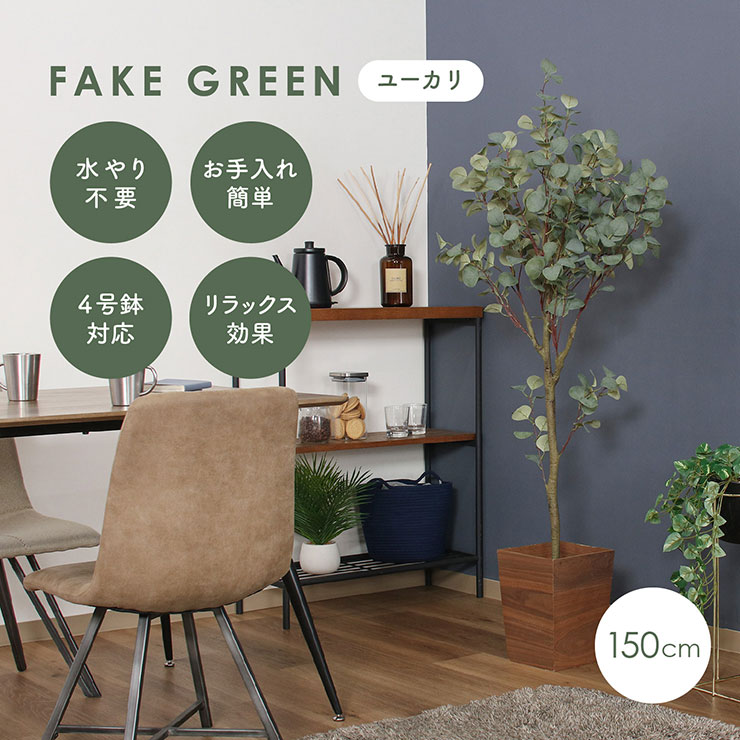 | 大型フェイクグリーンでお部屋に癒しを。 ユーカリ 150cm 癒しのグリーンを様々な場所で リラックス効果もあるグリーンは、どんなものよりもお部屋に馴染む不思議なインテリア。どこでもお好きな場所でお使いいただけます。 しっかりとしたボリューム 1つ飾るだけでもしっかり存在感のあるボリューム。リアルな葉の形にも注目です。 高さ150cm すらっとした高さ150cm のグリーンはお部屋に温かみをプラスします。 高級感のある小石 鉢に敷き詰められた黒い小石が高級感を演出します。 お手入れカンタン フェイクグリーンなので水やりなどの手入れを気にすることなく楽しめます。ときどき乾いたタオルでホコリをはたくだけでOK 便利なジョイント式 ジョイント式になっているので、使用しないときはコンパクトにしまうことができます ※商品には若干の個体差があります。表記サイズとサイズに多少の誤差が生じる場合がございます。予めご了承ください。 | |