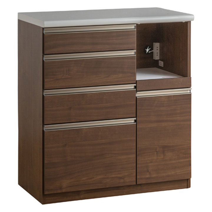 | 日本製 キッチンカウンター 幅90cm お部屋に馴染みやすいシンプルなデザイン。シンプルながら機能的なキッチンカウンター 清潔感の漂うホワイトと温かみある木目が特徴のブラウンの2色展開。ソフトクローズ機能を備えた引き出しと戸棚収納、傷や汚れ、熱に強くお手入れの簡単なメラミン天板。毎日使うものだからこそ機能性にもこだわって設計しました。 ■便利なスライドカウンター スライド式の収納スペースになっており手前に引き出すことができ、炊飯器の蒸気も逃すことができます。 ■作業性の高いカウンター 天板までの高さが1mになっていて、低すぎず作業のしやすい高さ設計になっています。 ■家具や家電を守るモイス材を使用 スライドカウンターの天井にはモイスという調湿・消臭機能をもった天然素材を使用。家具や家電を湿気から守ります。 ■ゆっくり閉じるソフトクローズ蝶番 収納棚の扉にはゆっくりと閉じるソフトクローズ蝶番を使用。小さなお子様がいるご家庭でも安心してご使用いただけます。 ■傷や汚れに強いメラミン天板使用 カウンター天板には熱や汚れに強く、耐久性に優れたメラミンを使用。お手入れも簡単でさっと拭き取るだけ。 ■背面まで丁寧に化粧仕上げ カウンターの背面まで丁寧に化粧仕上げがされており、細部にまでこだわりをもって作り上げました。 ■引き出しやすい取手 シンプルでフラットなカウンターのデザイン性を保ちつつ使いやすさへも配慮した取手は引き出しのしやすい形状になっています。 ■家電を設置しやすいコンセント 調理家電などを設置しやすい様、2口のコンセントを用意。スライドカウンターとも合わせて使いやすい設計に。 ■フルオープンレールの引き出し 引き出しはフルオープン式で開閉がスムーズ。便利なカトラリーケースも付属しており収納力も抜群。 ■用途に合わせて棚位置を調整 棚板は用途に合わせて3段階の高さへ調節することができます。 ■たっぷりの収納スペース 4杯の引き出し収納と開き戸の収納棚を設けており、用途に合わせてご利用いただけます。 | |