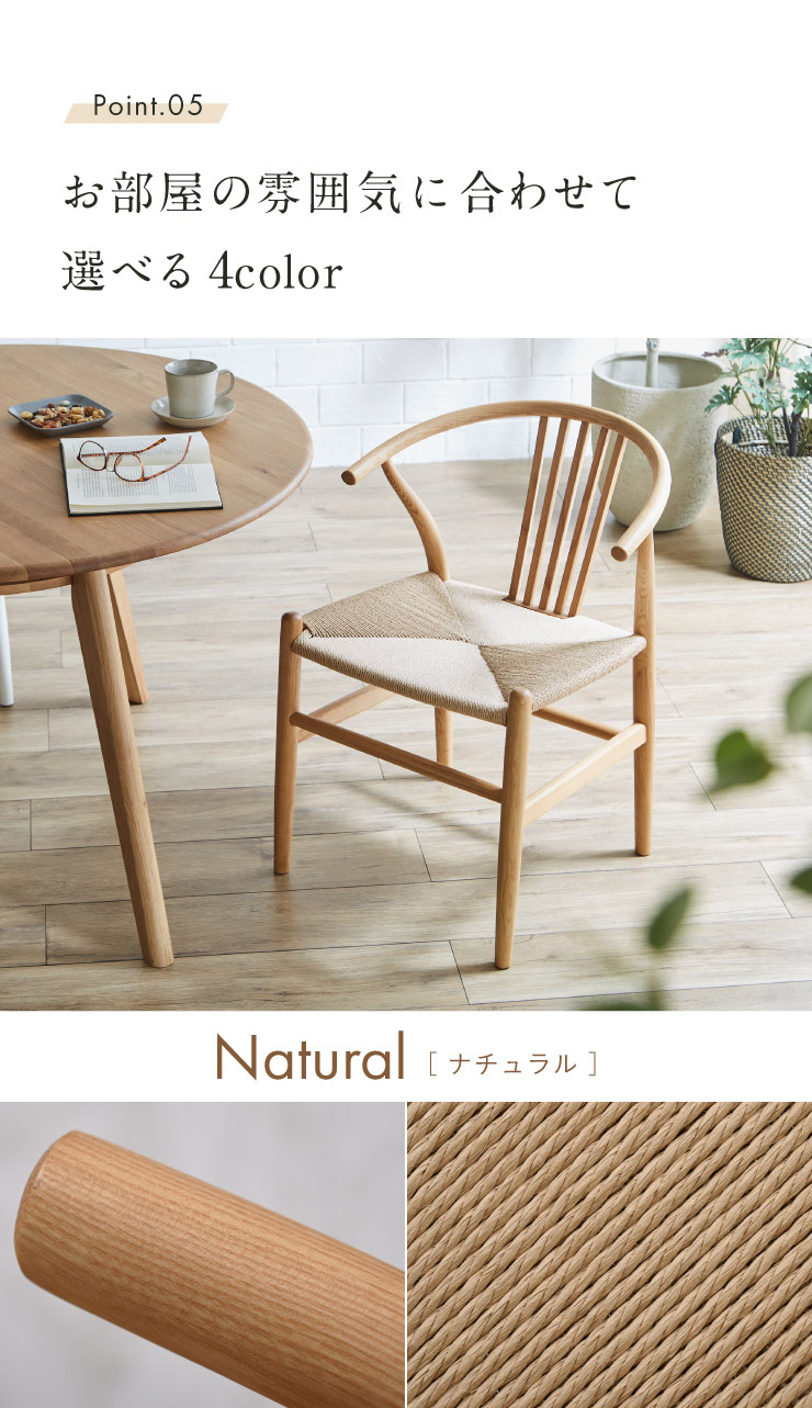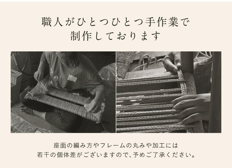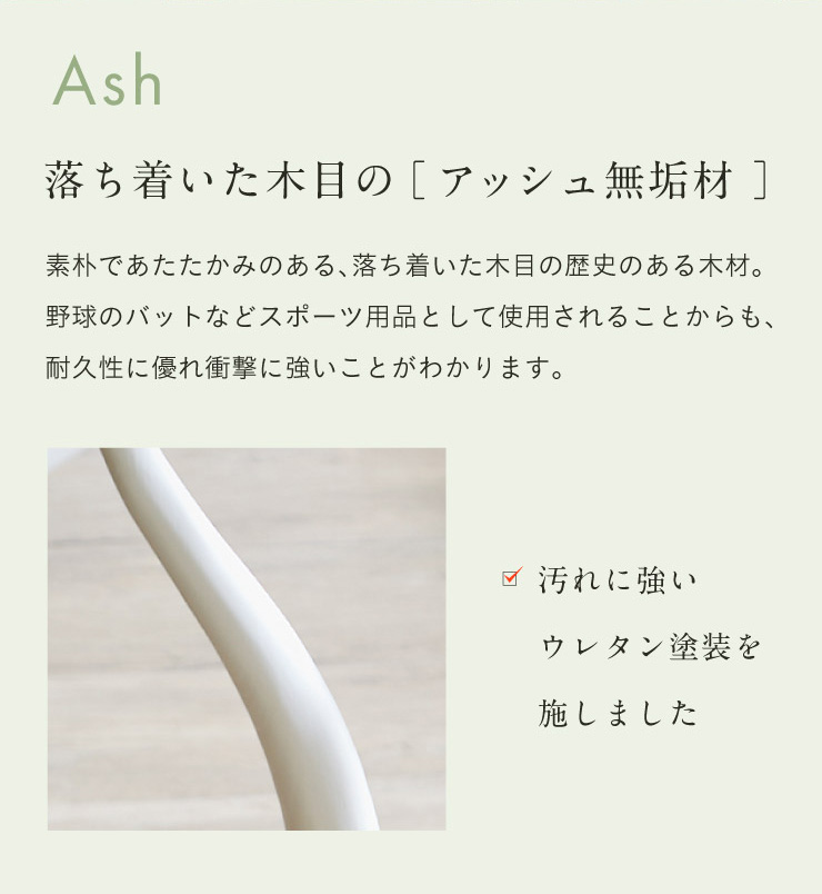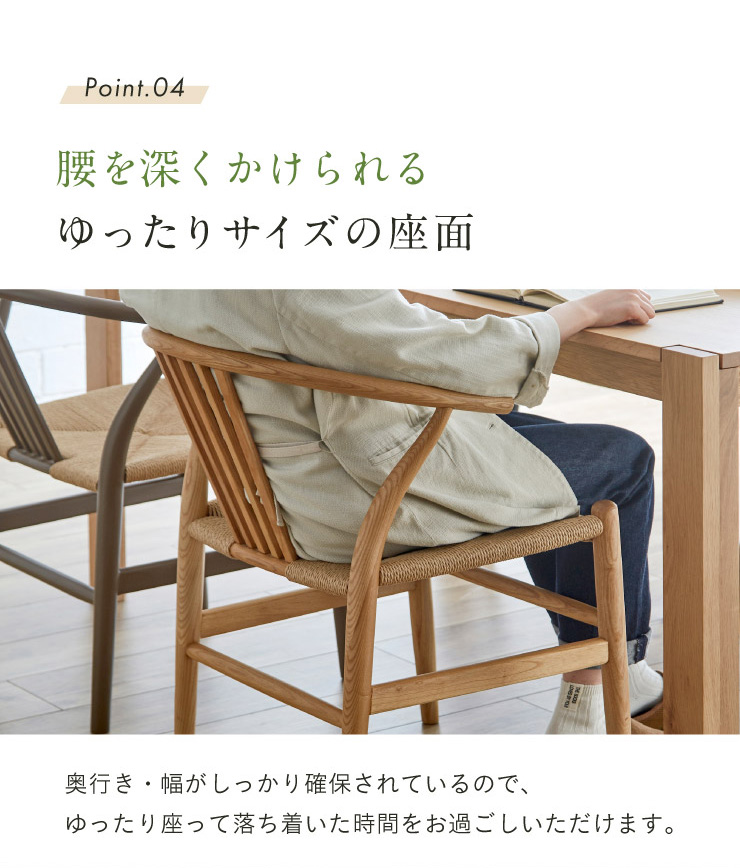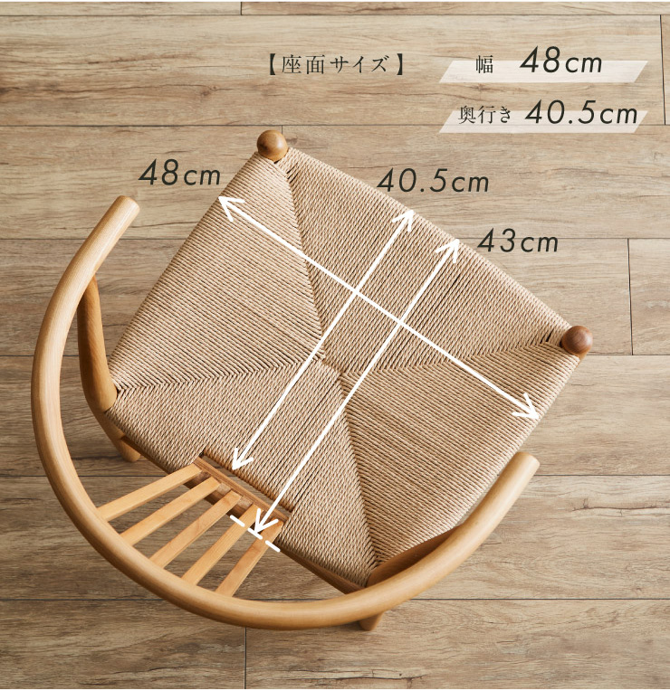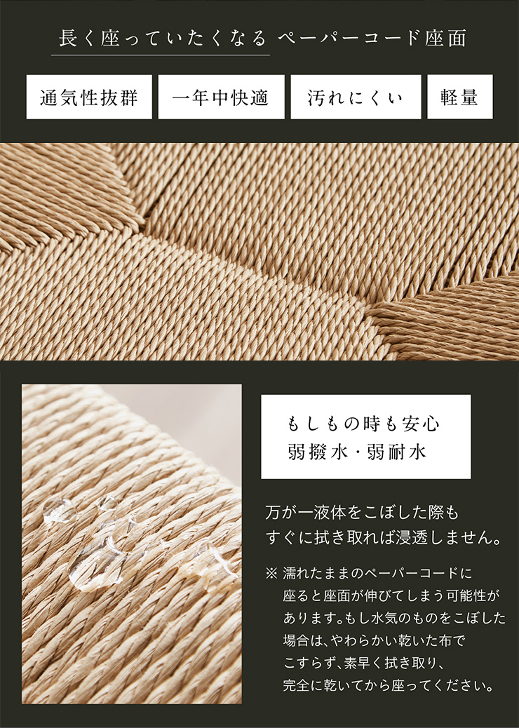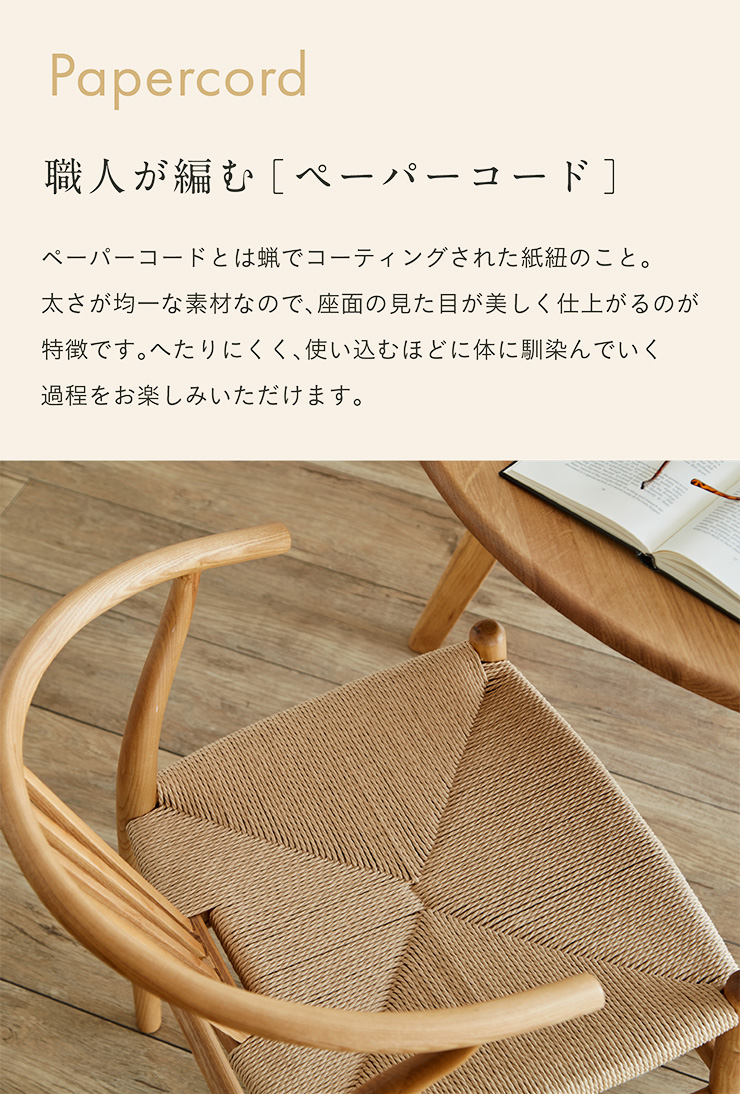 | 材質・塗装 | 構造部材:アッシュ無垢材 張り材:ペーパーコード 表面加工:ウレタン樹脂塗装 |