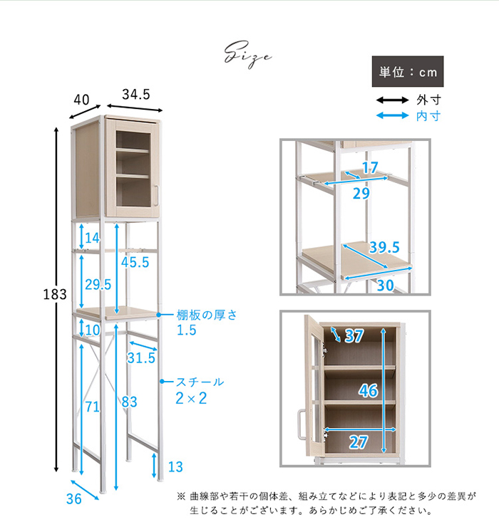 | サイズ | 商品サイズ:W34.5×D40×H183(cm) 商品重量:18.5kg 梱包サイズ:100×42×15(cm) 梱包重量:19.75kg |
