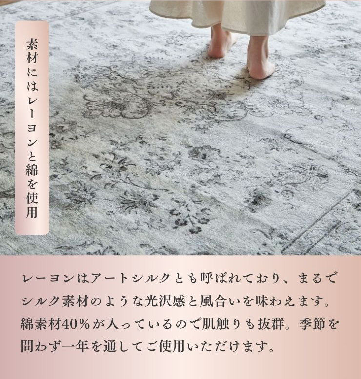 | 素材 | 表面:レーヨン60%・綿40% 裏面:不織布 パイル長:約3mm |