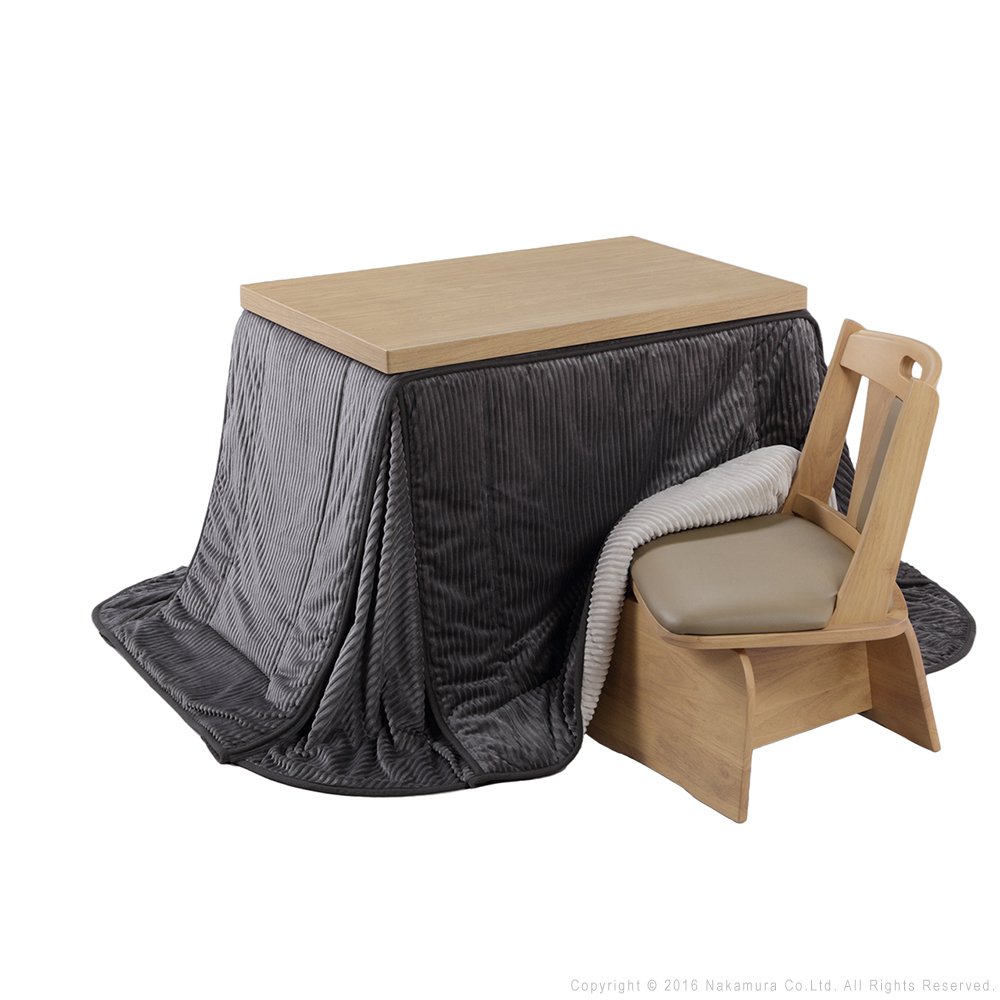 | サイズ | ●本体 約W90 x D60 x H45〜70cm ●こたつ布団 しじら織り:約250 x 220cm はっ水リバーシブル・コーデュロイリバーシブル:約252 x 222cm ●椅子 W46.5 x D49 x H75 x SH40.5cm |