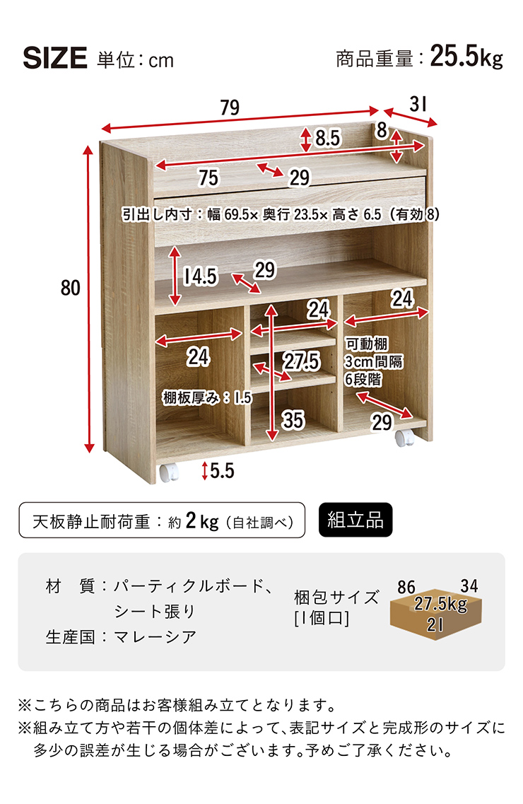 | サイズ | 全体外寸:W79 x D31 x H80cm |