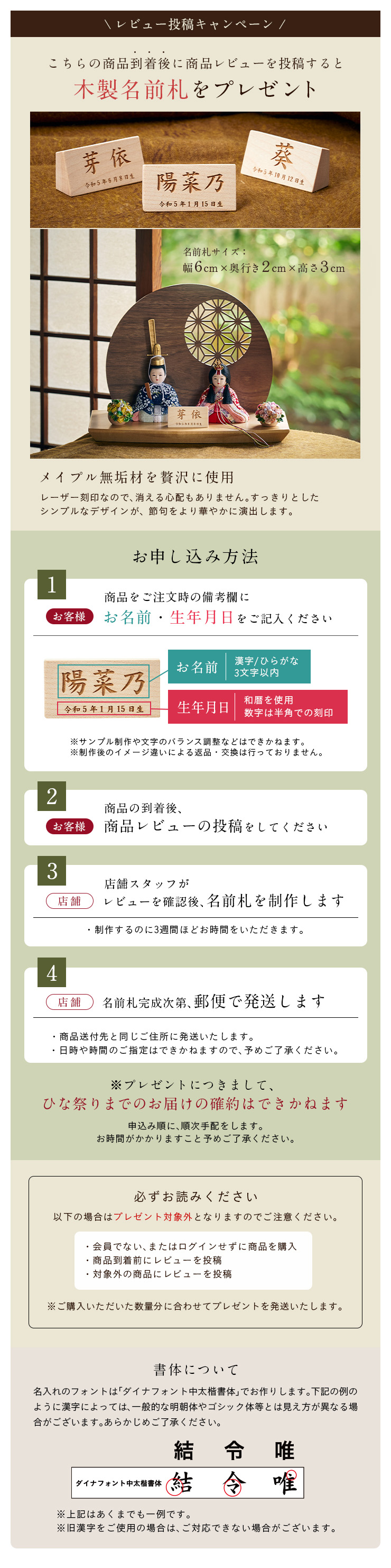 | 材質 | 衣装:ポリエステル、レーヨン 頭(お顔):石膏、胡粉(ごふん)塗り 台座:バーチ無垢材、ウォルナット突板 |