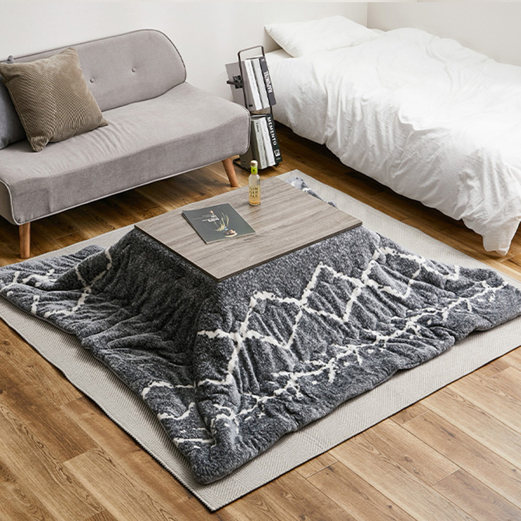 | こたつ布団 ベニワレン 約190x190cm 手描き風のゆるいラインが味わい深く、ぬくもりのあるベニワレン風デザインのこたつ布団。モノトーンで主張しすぎず、インテリアにも馴染むデザインです。先に糸を染色し、そのあとに生地を織ることで糸全体が染まり、一般的なプリント生地よりも色に深みと高級感が生まれます。収納もしやすい薄掛けタイプで、ご家庭の洗濯機で洗えるのもうれしいポイント。 ■お部屋をすっきりスマートに!薄掛けタイプのこたつ布団 こたつ布団といえば、ふっくらとボリュームのある厚掛けのイメージですが、薄掛けタイプなら生地がかさばらずお部屋がすっきりとした印象に! ■洗濯機で丸洗いOK 汚れても洗濯できるからいつも清潔にお使いいただけます。 ■リバーシブル仕様 裏面は、シンプルな無地としても使えるリバーシブル仕様となっています。 | |