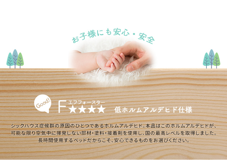 | 2段階調節脚付き 北欧パイン材すのこベッド Twily 北欧パインをフレームに使用した丈夫で快適なすのこベッド。寒冷地で育つ北欧パインは成長が遅く、年齢幅が密になるため美しい木目と強さを併せ持っています。 ■お子様にも安心・安全 シックハウス症候群の原因のひとつであるホルムアルデヒド。本品はこのホルムアルデヒドが、可能な限り空気中に揮発しない部材・塗料・接着剤を使用し、国の最高レベルを取得しました。長時間使用するベッドだからこそ、安心できるものをお選びください。 ■心落ち着く森林浴効果 ほのかに香る木の香にはフィトンチッドが含まれ、心身をリラックスさせる効果があると言われています。 ■通気性の良いLVLすのこで一年中快適 高温多湿の日本では、湿度を調整してくれるすのこベッドが最適です。まるで呼吸をするように、常に新鮮な空気を寝具に届けてくれるので、カビや臭いの原因となる湿気を逃がしてたまりにくくしてくれます。 ■しっかり支える安心の耐荷重 ・縦方向の桟木でベッド中央を補強し、負荷を分散しています。 ・ベッド中心の3本の脚を含む7本の脚で全体をしっかり支えます。 ・LVLすのこは強さと耐久性に優れ、軽いので、負荷を軽減します。 ・桟木はフレームにがっちり固定でさらに丈夫です。 ■2段階の高さ調節 ねじ込み式の脚は、簡単に取り外して高さが変えられます。和室にも使いやすいロースタイルもおすすめです。 ※こちらの商品はお客様組み立てとなります。 ※天然木を使用しておりますので、木目・節・色合いに個体差がございます。予めご了承ください。 | |
