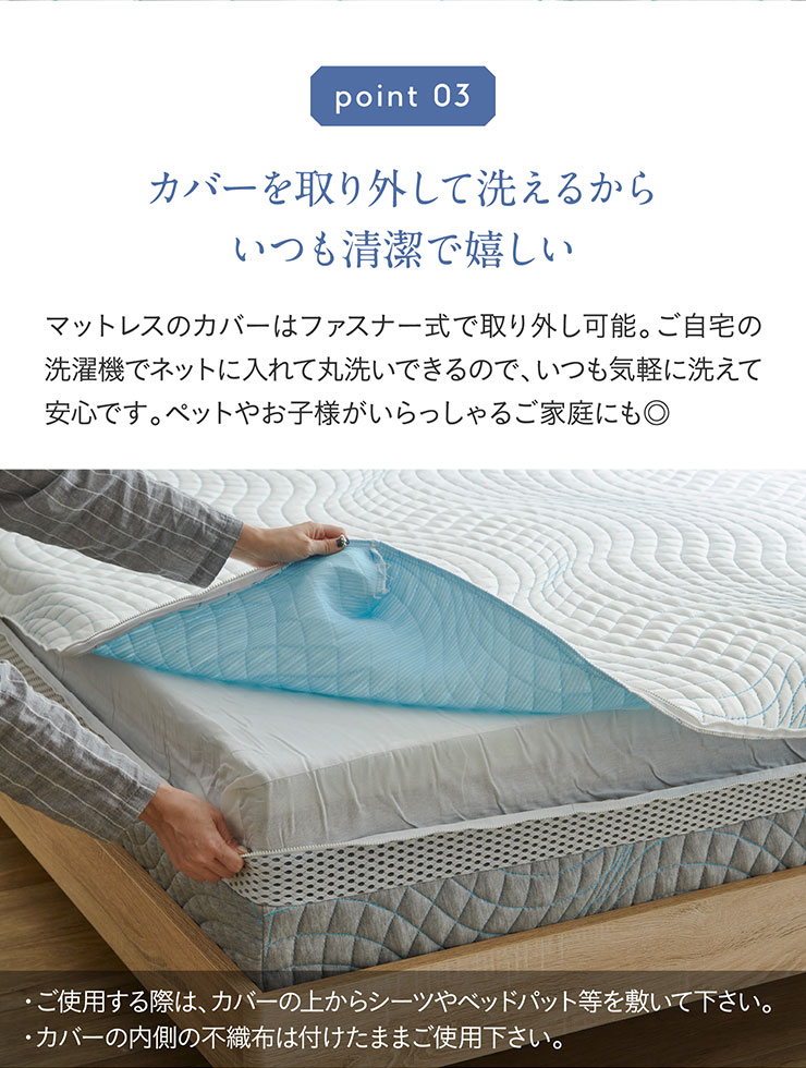| 材質 | 生地:ポリエステル 内部:HRフォーム、クールジェルメモリーフォーム、ココナッツファイバー |