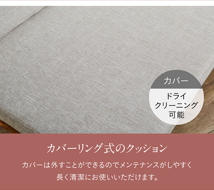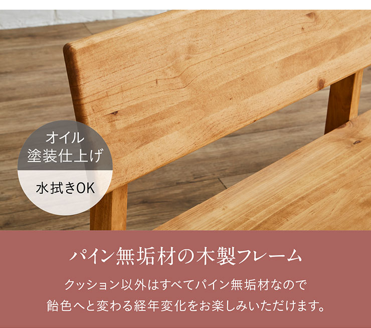 | 材質 | 主材:パイン無垢材 塗装:OSMOオイル塗装 張り材:ポリエステル100% クッション材:ウレタンフォーム |