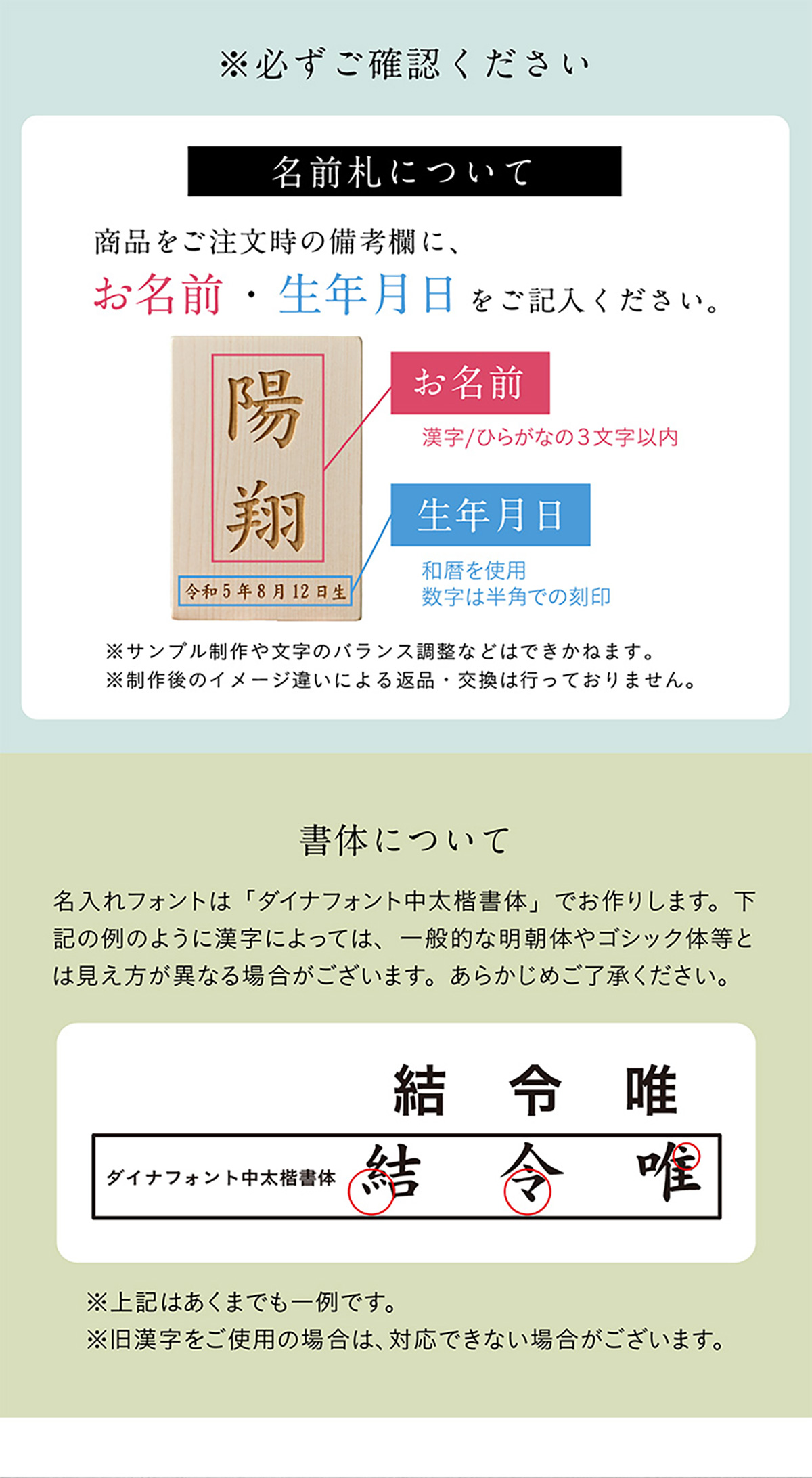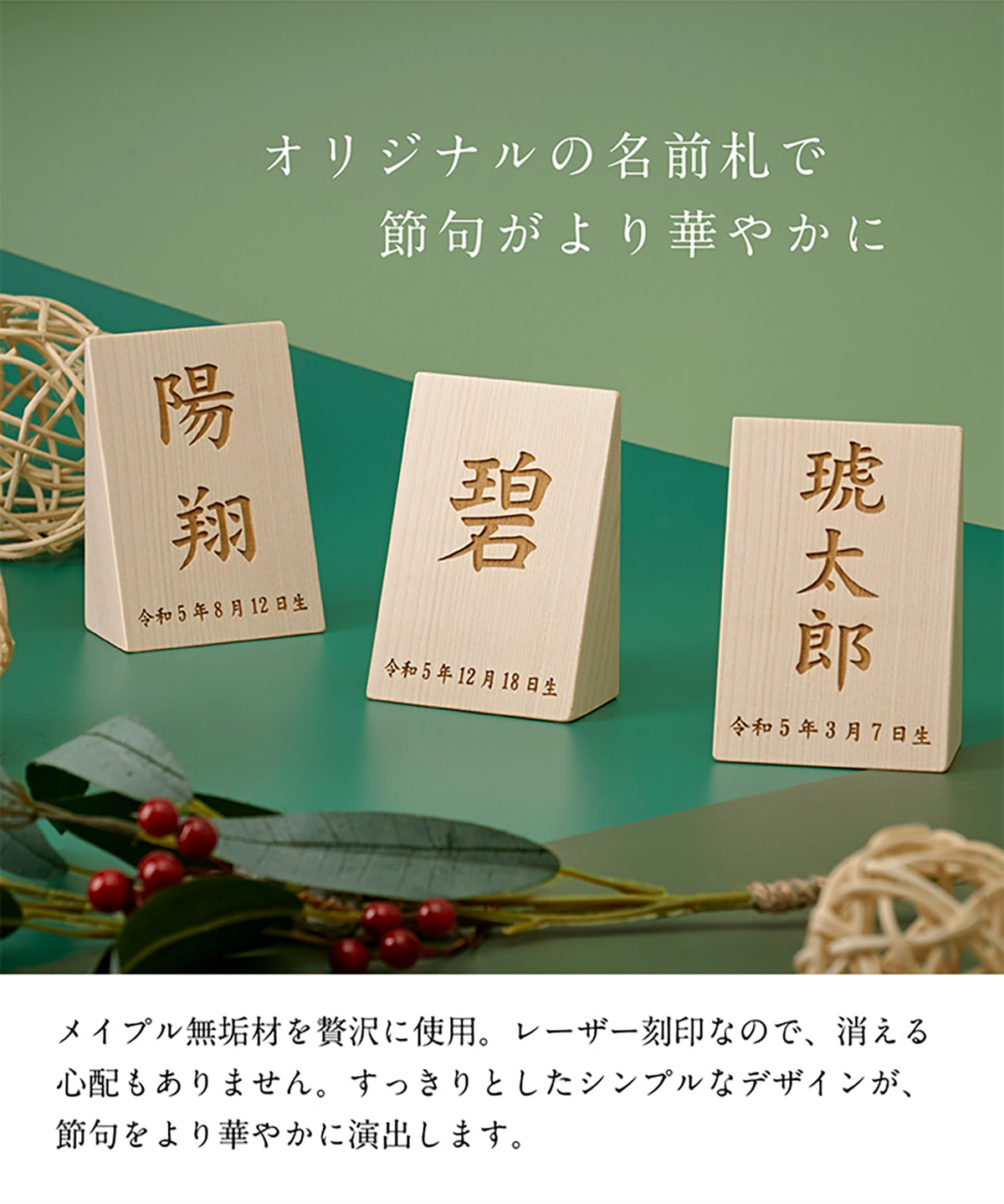 | ■職人さんの手仕事から生まれた、コンパクトでモダンな節句飾り ■シンプルでモダンなデザインが、和室にも洋室にも馴染みます。 ■メイプル×ウォールナット色味の異なる2種類の無垢材を組み合わせ ■木にも環境にも優しい塗料を使っています ■着脱パーツで簡単に組み立てられます ■日本の伝統柄『麻の葉』づかいで、節句がより華やかに ■オリジナル名前札で節句がより華やかに 《本作品に関するお願い》 本作品は、すべて職人による手加工にて製作を行っております。そのため、左右や厚みなど、寸法に数ミリ程度の個体差があります。また磁石につきましては、個体差に合わせて取り付けるため、本体中心より若干ずれている場合や、左右が対称でない場合もあります。あらかじめご理解いただきますよう、お願い申し上げます。 《注意事項》 ・カビ、木の変形、変色が早まる恐れがあるため、使用時、保管時ともに、高温多湿、直射日光を避けてご愛用ください。 ・木の風合いには個体差があります。節や木の濃淡などを理由とした返品・交換は対象外となりますので予めご了承ください。 ・先端がとがっている部品がありますので注意しご使用ください。 ・本商品は食べ物ではありません。口の中には絶対に入れないでください。 ・小さなお子様が手を触れない場所にお飾りください。 ・平らな安定した場所にお飾りください。 ・ギフトラッピング&熨斗には対応していませんのでご了承ください。 | |