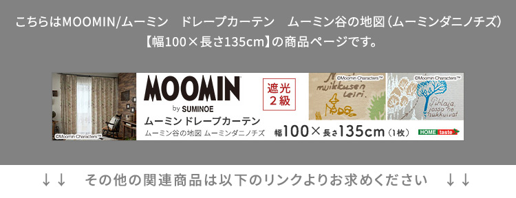 | ムーミン ドレープカーテン (ムーミン谷の地図) 楽しいムーミン一家の姿にほのぼのする、地図のデザインのドレープカーテン。キャラクターたちが楽しそうに暮らす情景が、繊細なタッチで描かれています。 ■インテリアに馴染むデザイン フィンランド生まれのムーミンはナチュラルな家具を基調とする北欧インテリアにマッチします。大人でも使えるようなデザインに仕上げています。 ■遮光2級(遮光率99.80%以上) NIF(一般社団法人日本インテリア協会)の基準で遮光等級を計測されています。外からの光を遮ると同時に、夜間に室内の様子が外に見えにくくなります。 ■ご家庭の洗濯機で洗えて清潔 水分による縮みが少ないポリエステルを採用し、お洗濯をしても色落ちや色あせ、生地の伸び縮みの心配なし。気軽にお洗濯できて清潔なので、子供部屋にも適しています。 ■ヒダを美しく保つ形状記憶加工 据が広がらす、すっきりコンパクトに収まります。半永久的に続くのでお洗濯後のアイロンは不要です。 ■安心・安全の日本製 生地から縫製まで日本で製造。最新の技術と徹底した品質管理で丁寧に作り上げられています。 ※ドラム式洗濯機はご使用いただけません。乾燥機・ドライクリーニングはお避け下さい。 ※両開きでご使用の場合は2枚ご注文ください。 ※お客様ご使用のモニター設定やお部屋の照明などにより、実際とは異なる場合がございます。あらかじめご了承ください。 | |