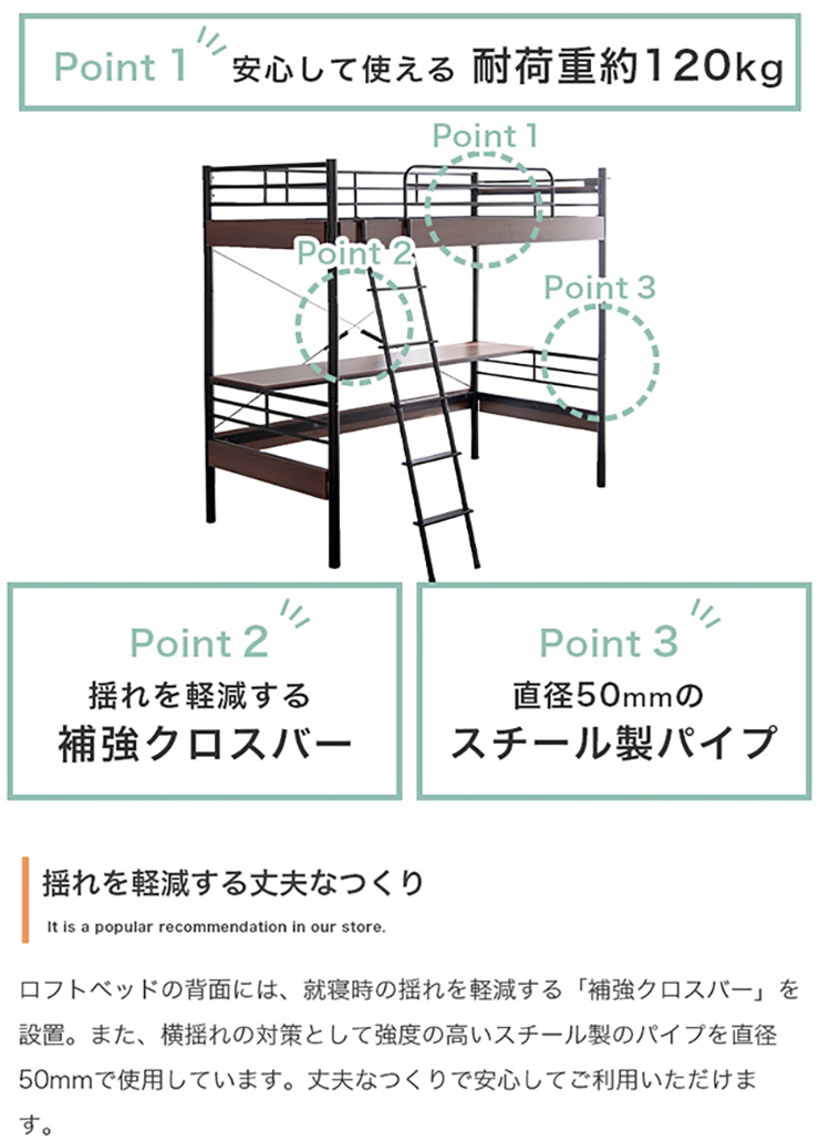 | 限られたスペースをより有効に活用する『Toby(トビー)』のデスク付きロフトベッド。 限られた空間で広々としたデスクとベッドを確保するロフトベッド、ワンルームや個人のお部屋などのスペースに余裕が無いお部屋にピッタリです。 また、ベッドとデスクの連結を解除するとベッドとデスクを単体で使用することも可能で、使い方の幅が広がります。 ※こちらの商品はお客様組立となります。 | |