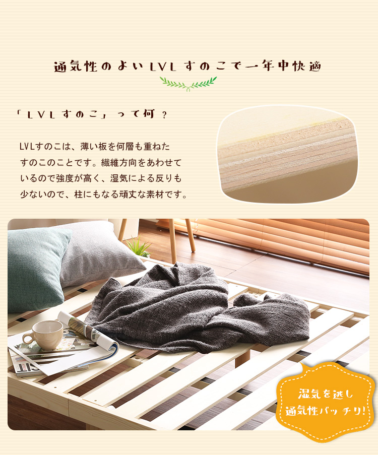 | 材質 | 本体:パイン材 すのこ:合板(LVL) |