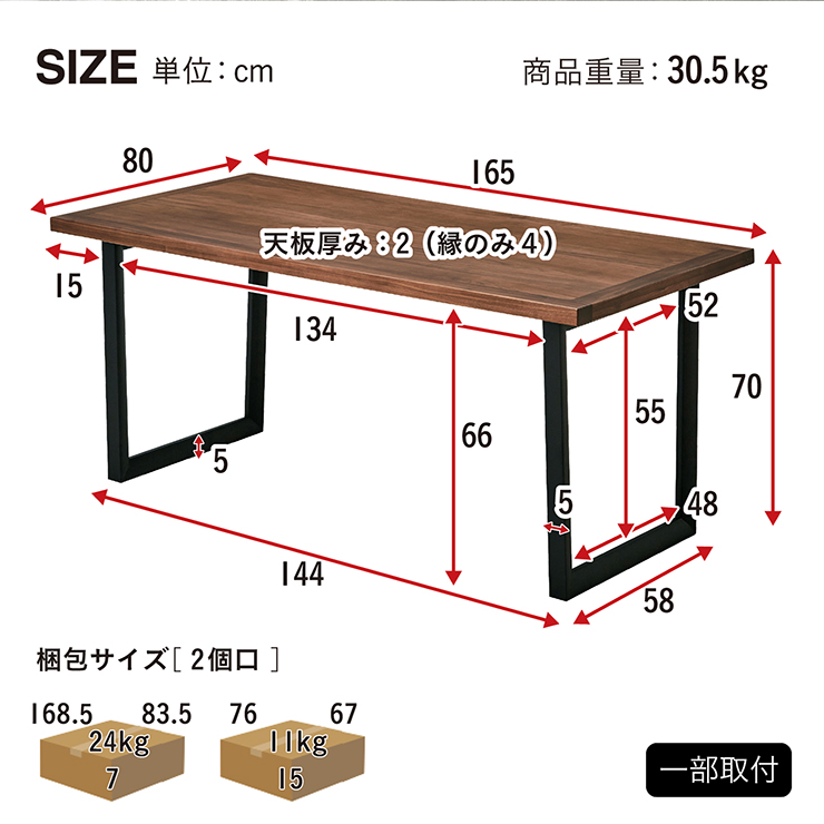 | サイズ | 天板:W165 x D80 x H70cm 天板厚:2cm(縁のみ4cm) |
