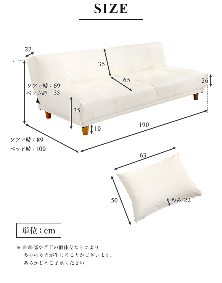 | サイズ | ソファ時:W190 x D89 x H69cm ベッド時:W190 x D100 x H35cm |