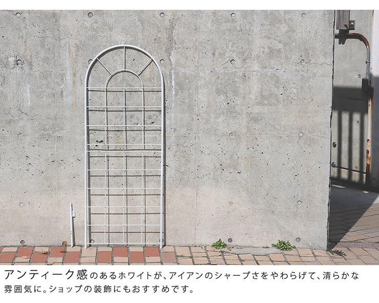 | 清らかでクラシカルなフェンスが植物をやさしく引き立てます 美しい曲線が庭園にやわらかさを与える、シンプルなデザインのフェンスです。 主役の花を美しく見せる、上品な存在感が魅力です。 どんなグリーンも引き立てますが、薔薇との相性はピカイチです! センスが良く圧迫感のないフェンスは、どんな場所にもマッチして、使いやすさ抜群。 高さ150cmのロータイプは、隣家との境界線に使うと、視線を遮りすぎることなく毎朝のご挨拶もできます。 道路からのちょっとした目隠し&防犯にも役立ちます。 ※こちらの商品はお客様組立となります。 | |