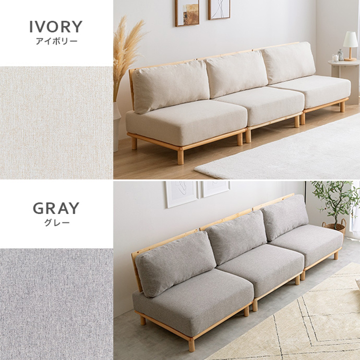| サイズ | 【ソファ】 幅240cm(80cm+80cm+80cm)×奥行80cm×高さ74cm (座面高:35cm/重量:約16kg(1脚あたり)/耐荷重:約80kg(1脚あたり)) 梱包サイズ(3個口):82 x 82 x 36cm・82 x 82 x 36cm・82 x 82 x 36cm(重量:約19.5kg) |
