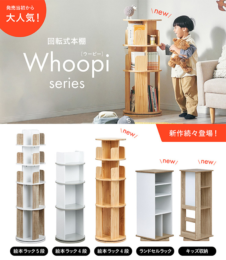 | スリムで大容量!省スペースの回転式本棚 Whoopi(ウーピー) 4段 成長する子どもに寄り添う万能本棚 他商品との違いはココ! ■3段にも4段にもなる柔軟設計 お好みや用途に合わせて三段または四段で使用可能。三段でコンパクトに、四段でさらに収納力をアップさせるなど、成長やライフスタイルに合わせて長くお使いいただけます。 ■他商品より広い奥行きで大容量収納 通常よりも奥行きが広く設計されているため、コミックや書籍だけでなく、大型本やファイル、人形、飾り物なども余裕を持って収納可能。見た目はスリムでも、大容量を実現します。 ■省スペース設計でコンパクトな配置 椅子ほどのスペースに収まるコンパクトサイズで、お部屋の限られたスペースにもスッキリ配置。回転式だから必要な物にすぐ手が届きます。 ■他商品より大きな絵本をディスプレイ可能 お気に入りの大きな絵本やアートブックをしっかりディスプレイできる設計が魅力。他商品では難しいサイズ感にも対応し、大切な本を「見せる収納」としてお部屋に彩りをプラスします。 三段にも四段にも調整できて、奥行きもたっぷり!この回転式ラックで、お部屋をもっと機能的に、もっと楽しくアレンジしてみませんか? ※こちらの商品はお客様組み立てとなります。 ※組み立て方や若干の個体差によって、表記サイズと完成形のサイズに多少の誤差が生じる場合がございます。あらかじめご了承ください。 | |