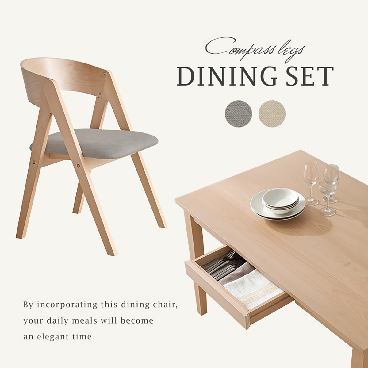| ダイニング5点セット MI-861037-5S 引き出し付き 天然木を贅沢に使用したダイニング5点セット。直線と曲線の調和のとれたシルエットがダイニング空間を北欧モダンな雰囲気に。テーブルは便利な引き出し付き。 ■なめらかな肌触りのビーチ材を贅沢に使用。強度が高く、耐久性にも優れています。 天板にはビーチ材突板を使用し、ウレタン塗装を採用。水やキズに強く、テーブルのお手入れも簡単です。 ■チェアの座面は肌触りの良いファブリックを使用。オールシーズン快適にご使用いただけます。 ■ゆったりくつろげる広めの座面と身体にフィットする背もたれでゆったりくつろげます。 ■テーブルには小物を収納できる引き出しが2杯。両側に引き出しがあるので便利に使えます。 ※この商品はお客様組立となります。 ※組み立て方や若干の個体差によって、表記サイズと完成形のサイズに多少の誤差が生じる場合がございます。 | |