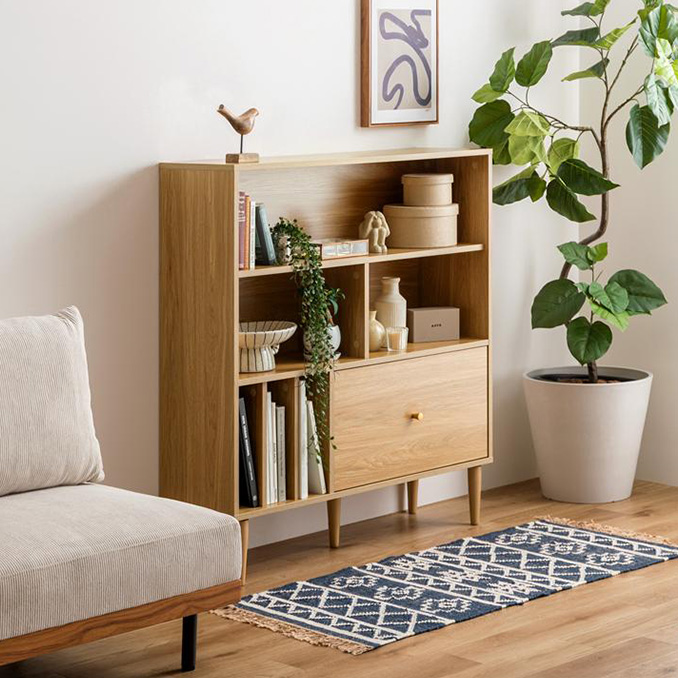 | 引き出し付き本棚 Lykke(ルゲ) 洗練された美しい空間作りができる引き出し付き本棚。スリムなサイズ感で大容量収納が可能です。置くだけで雰囲気溢れる、実用的で使いやすい本棚です。 ■オブジェや本などを置いて、見せる収納が楽しめるオープン収納。 ■雑誌サイズの物も入るスリット収納。雑誌や本が倒れにくいため使いやすく快適です。 ■たっぷり収納できる引き出し収納。開け閉めもスムーズで、快適にお使いいただけます。 ■省スペースで圧迫感なく置けるスリムな設計 ■お手入れ簡単なメラミン貼りを使用 ■掃除がしやすく常に清潔さを保てます。 ※この商品はお客様組み立て商品となります。 ※組み立て時間:2人以上で約90分 ※プラスドライバーをご用意ください。 ※揺れ防止用具(背面用)を付属しています。 ※若干の個体差によって、表記サイズと完成形のサイズに多少の誤差が生じる場合がございます。 ※画面上のカラーはご使用ブラウザやモニターの設定により、実物とは若干異なる場合がございます。 | |