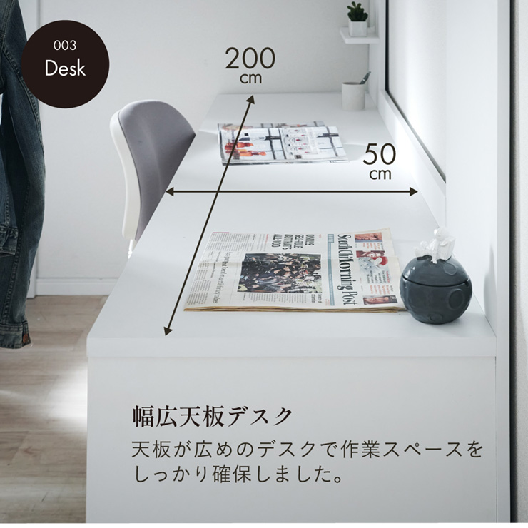 | System bed Snijder(スナイデル) ショールームのような収納スタイル。シンプルでおしゃれなデザインだから、大人になっても違和感なく、ずっと使えるベッドです。 ■スライド棚の右側収納 スライド棚になっているため、必要なものをサッと取り出すことができます。フルスライドレール仕様。 ■オープン収納スペースの多段シェルフ 本や雑貨の収納にぴったりなオープンラックスペース。4箇所は可動棚なので収納物に合わせて高さ調節ができます。 ■空間を最大限に活かしたハンガーラック たっぷり洋服をかけて収納できるワイド123cm。ベッド内側・外側どちらからも収納可能なので取り出しもラクラク。 ■開閉ラクラク3段チェスト 3つの引き出しのチェストはスライドレール仕様。たっぷり収納できて、開閉もラクラク ■ちょい置きに便利な2箇所の飾り棚 ■幅広天板デスク 天板が広めのデスクで作業スペースをしっかり確保しました。 ■省スペースな垂直はしご・上りやすいように対角にくり抜かれた取っ手・幅広ステップ ■メンズでも広々使えるSDサイズ ゆったりと寝る事ができるSD(セミダブル)サイズなので大人の男性も使用できます。 ■Detail ・高さのあるベッドでも安心してお使いいただけるよう高めのサイドフレームに。安全面にもこだわった設計となっています。 ・床板にはLVLボードを採用。中央に補強バーを設け、しっかりと支えます。 ・尖った危険な角には丸みをつけて安全性アップ。 ※こちらの商品はお客様組み立てとなります。 ※耐荷重検査は静止耐荷重です。ベッドの上で激しく動く、急激な力を加える、飛び跳ねるなど、1点に集中して負荷をかける行為はお控えください。 ※組み立て方や若干の個体差によって、表記サイズと完成形のサイズに多少の誤差が生じる場合がございます。 ※こちらの商品はべッド本体のみの販売となります。マットレスは別売りとなります。 ※はしごの位置は固定となります。左右の入れ替えはできません。 | |