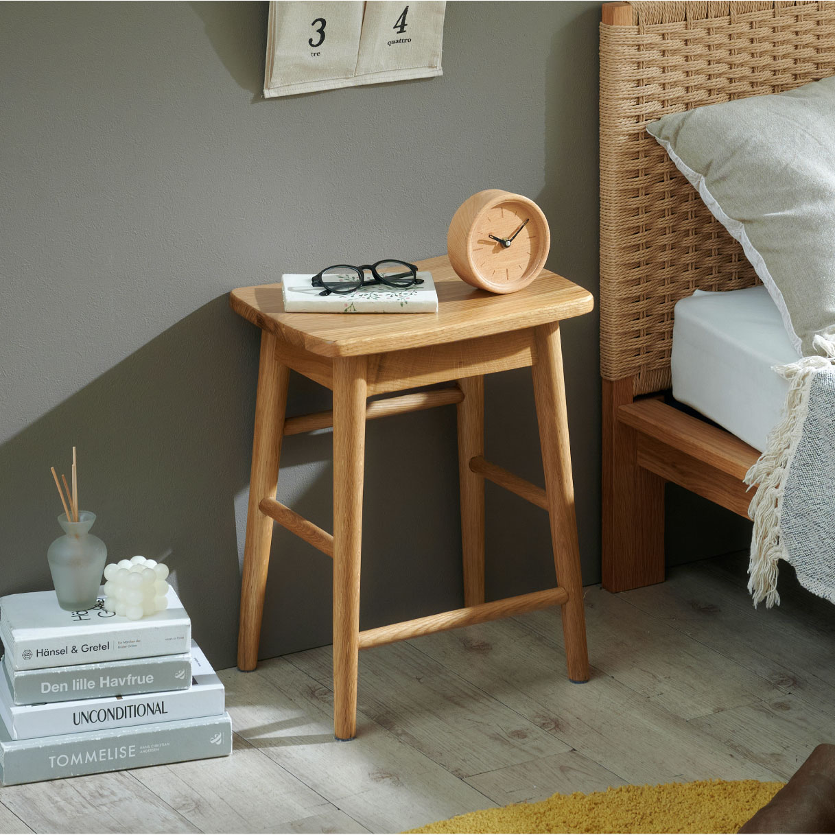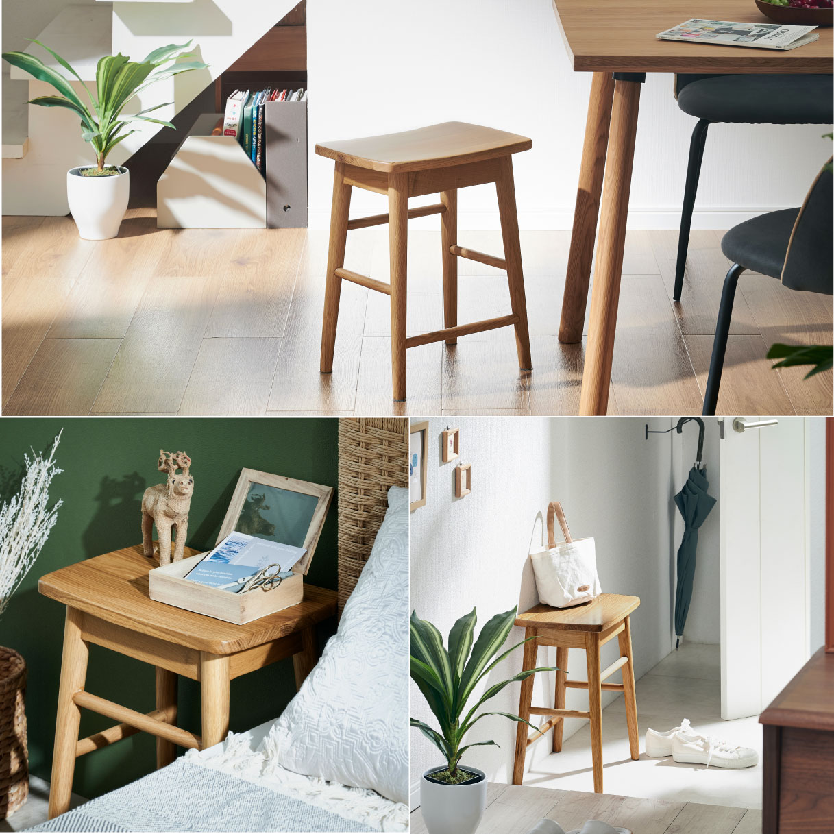 天然木のやさしさで暮らしにぬくもりを Stool Vigil(ビジル) 上質な天然木の風合いをそのままに、 やさしい佇まいのオーク無垢材を使用しました。 ■まるみを帯びた優しいデザイン 自然の温もりを感じられる天然木を贅沢に使用したスツールは、 どんなテイストのお部屋にも馴染みやすく優しい雰囲気をプラスしてれます。 ■自然素材ならではの個性が楽しめる木目と肌触り 長く使うと艶が出てきたり、より滑らかになったりと手触りの変化も楽しんでいただけます。 オーク無垢材は重厚な存在感と力強い木目が魅力です。 ■ちょうどいい座面高46cm 高すぎず低すぎない、コンパクトでシンプルなスツール。 さまざまなシーンでお使いいただけるのでおしゃれで実用的なアイテムです。 ■重さ約3.8kg ・軽量タイプなので持ち運びも簡単に行えます。 ■DETAIL ・床の傷防止に脚裏フェルト付き ・座面厚み2cm ※こちらの商品は、天然木を使用しております。その為、木の表情や風合いには個体差がございます。節など木の風合いを理由とした返品・交換は対象外となりますので予めご了承ください。 ※若干の個体差によって、表記サイズと完成形のサイズに多少の誤差が生じる場合がございます。予めご了承ください。 ※防水ではございませんので、濡れた場合は放置せずすぐに拭き取ってください。 | |