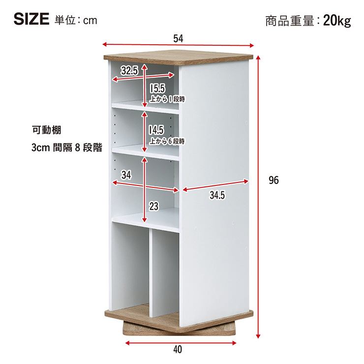 毎日の支度がもっとスムーズになる ランドセルラック Whoopi(ウーピー) 大人気の回転式絵本ラックWhoopi(ウーピー)seriesから 回転式ランドセルラックが登場!! リビングにも馴染むシンプルデザイン ■Whoopi(ウーピー)seriesでも人気の3colorをご用意。 お部屋のテイストやお好みに合わせてお選びいただけます。 ■スムーズな360度回転 ベアリング入りの台座で滑らかに回転するので、小さなお子様でもスムーズに回していただけます。 ■高さ96cmのロースタイル 低めの重心により、倒れにくく、安定感のある安全設計になっています。 ■散らかりがちな通学グッズも、これひとつでスッキリ! 上段は3cm間隔5段階の可動棚なので収納するものに合わせて調節できます。 ランドセルはもちろん、教科書や文房具など、日々の学習道具も決まった場所に まとめて収納すると毎朝の支度もラクラクです。 ■オープンラック 上部は2枚の棚板付き。 8段階の可動棚になっているので収納するものに合わせて調節できてとても便利です。 下部は仕切り板がついているため、教科書やノートを立てて収納できます。整理整頓もラクラク。 ■ホワイトボード×ディスプレイスペース 市販のマーカーで自由に描けるホワイトボードと下にはお好きな絵本を飾れる、ディスプレイスペースになっています。 ■便利な物かけフック 上下にある2つのフックはお子さまの成長や用途に合わせて使い分けることができてとっても便利。 スッキリ収納できてお部屋もきれいに保てますね。 ■置き場所を選ばない回転式ランドセルラック くるくる回る回転式だから、どこに置いても手が届きやすく、出し入れもスムーズ。 お部屋のレイアウトに左右されず、置き場所に困らないのも嬉しいですね。 来客時はくるっと回して正面に。フック部分は隠せる収納としても◎ ■シリーズで揃えて、もっと快適に 別売りの《Whoopi(ウーピー)キッズ収納》と一緒にお使いいただくと 収納力も使いやすさもアップ!シリーズで揃えるのもおすすめです。 ※こちらの商品はお客様組み立てとなります。 ※組み立て方や若干の個体差によって、表記サイズと完成形のサイズに多少の誤差が生じる場合がございます。あらかじめご了承ください。 | |