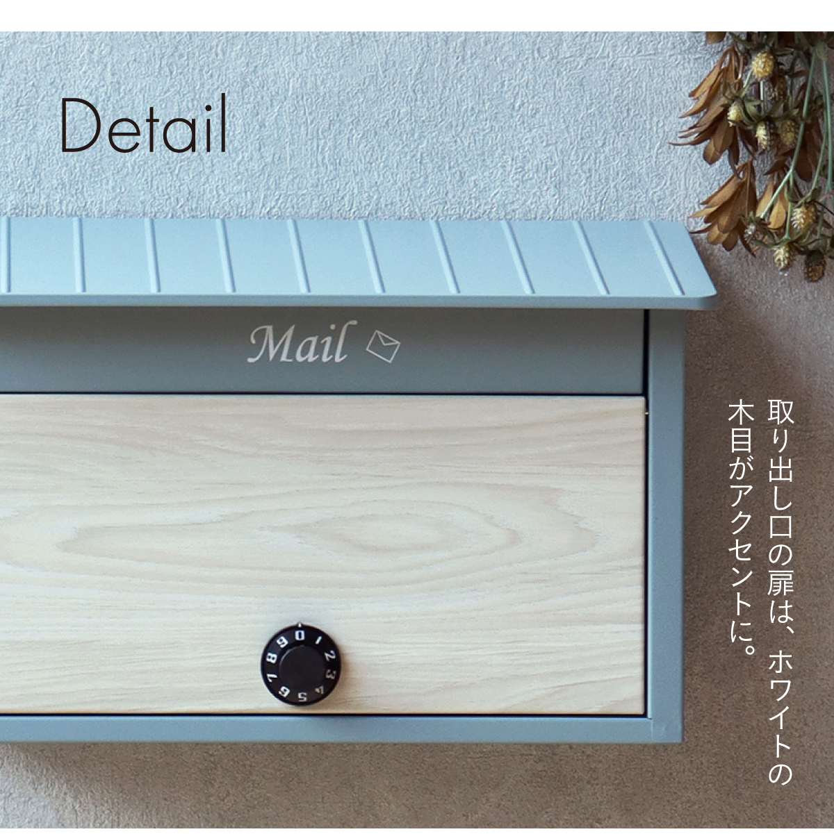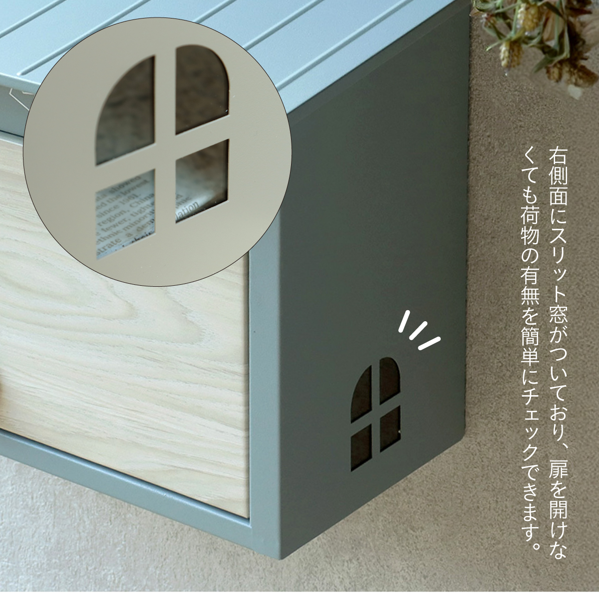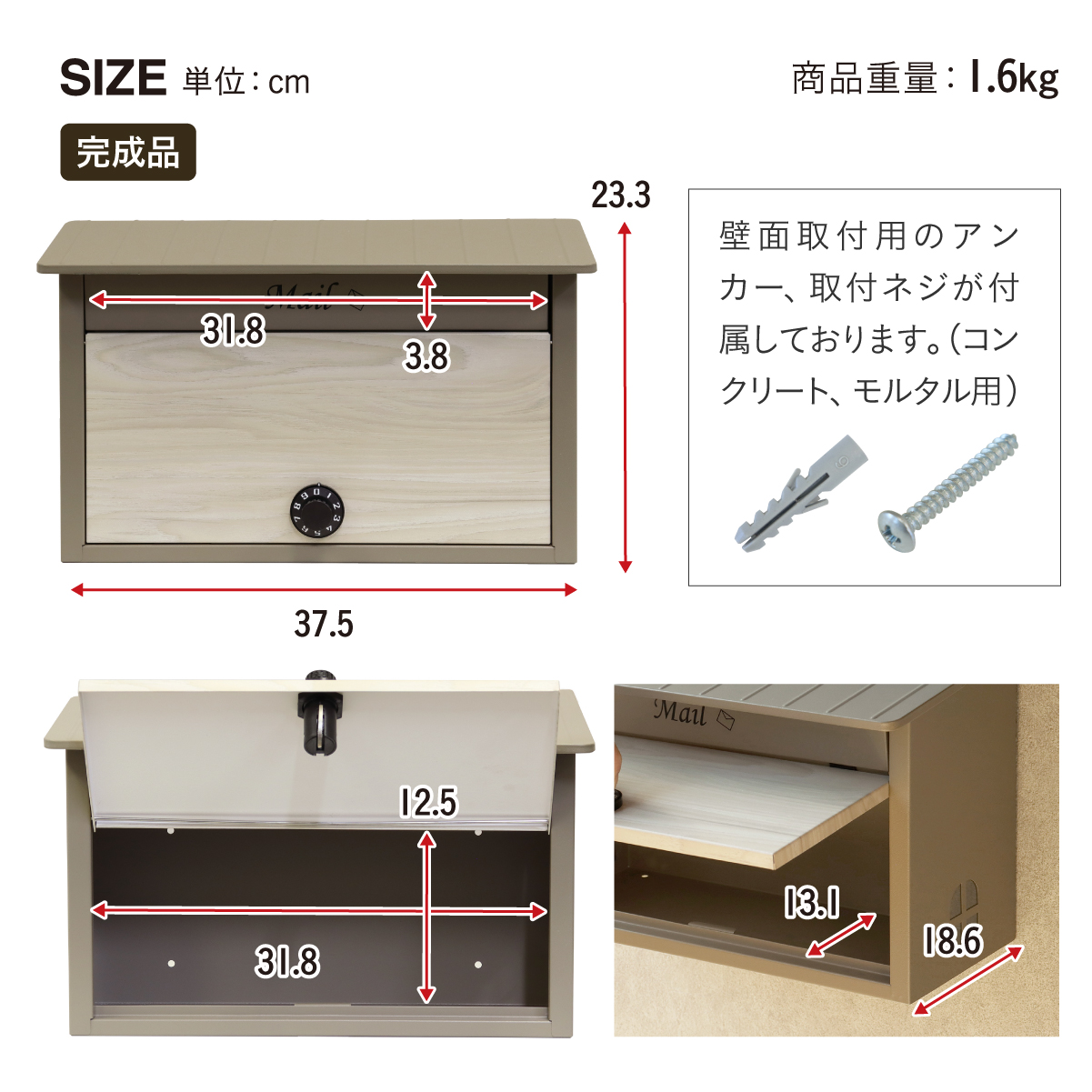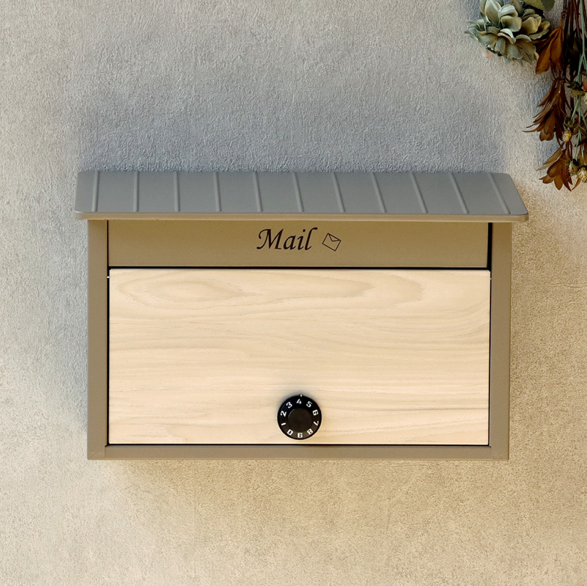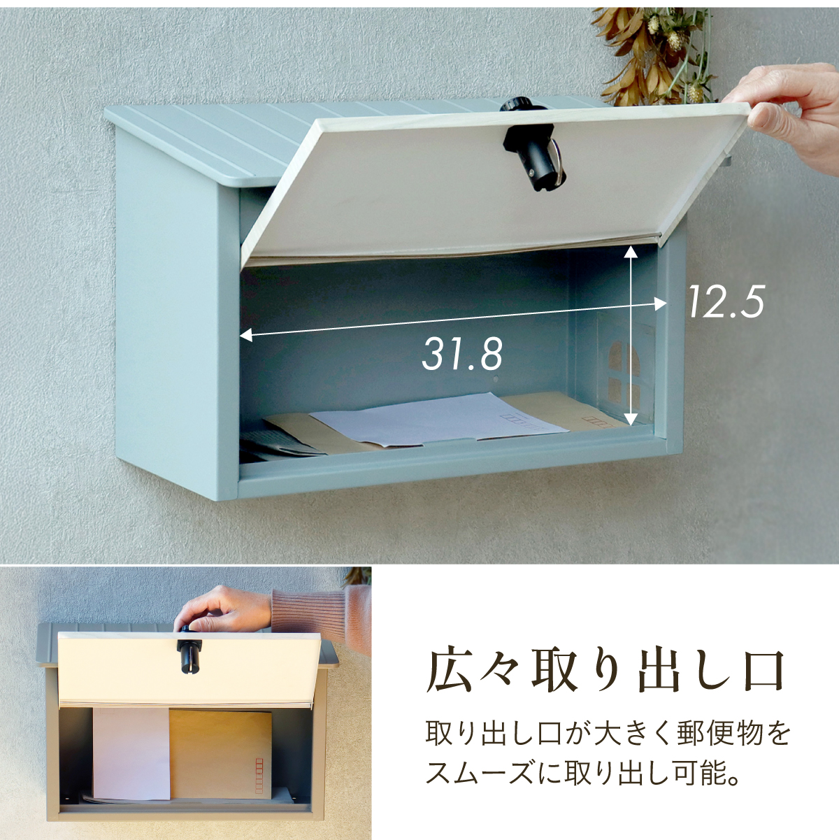 郵便受け 壁掛けポスト Lia(リア) 玄関先をおしゃれに彩るデザインポスト。2色のくすみカラーをご用意しました。 ■横長のコンパクトサイズのポストなので、壁面に取り付けても圧迫感のない仕上がりに。 ■取り出し口が大きく郵便物をスムーズに取り出し可能です。 ■天面の屋根は、傾斜が付いており、雨が溜まらず流れていきます。 ■ガルバナイズド加工のため、サビにくい仕様となっています。 ■右側面にスリット窓がついており、扉を開けなくても荷物の有無を簡単にチェックできます。 ■鍵不要のダイヤルロック付きなので防犯面で安心。鍵を持ち運ぶ手間を省けるだけでなく、紛失する心配もありません。 ※防水塗装は施しておりませんので、軒下や屋根がある場所への設置を水準いたします。 ※ダイヤルロックの番号は固定のためお客様による変更はできません。 ※壁面取付用のアンカー、取付ネジが付属しております。(コンクリート・モルタル用) ※光の当たり具合やモニター環境により実際の商品と色味が異なって見える場合がございます。予めご了承ください。 | |