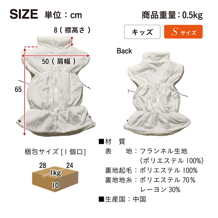 サイズ | 65cm(長さ)/50cm(肩幅)/8cm(襟高さ) |