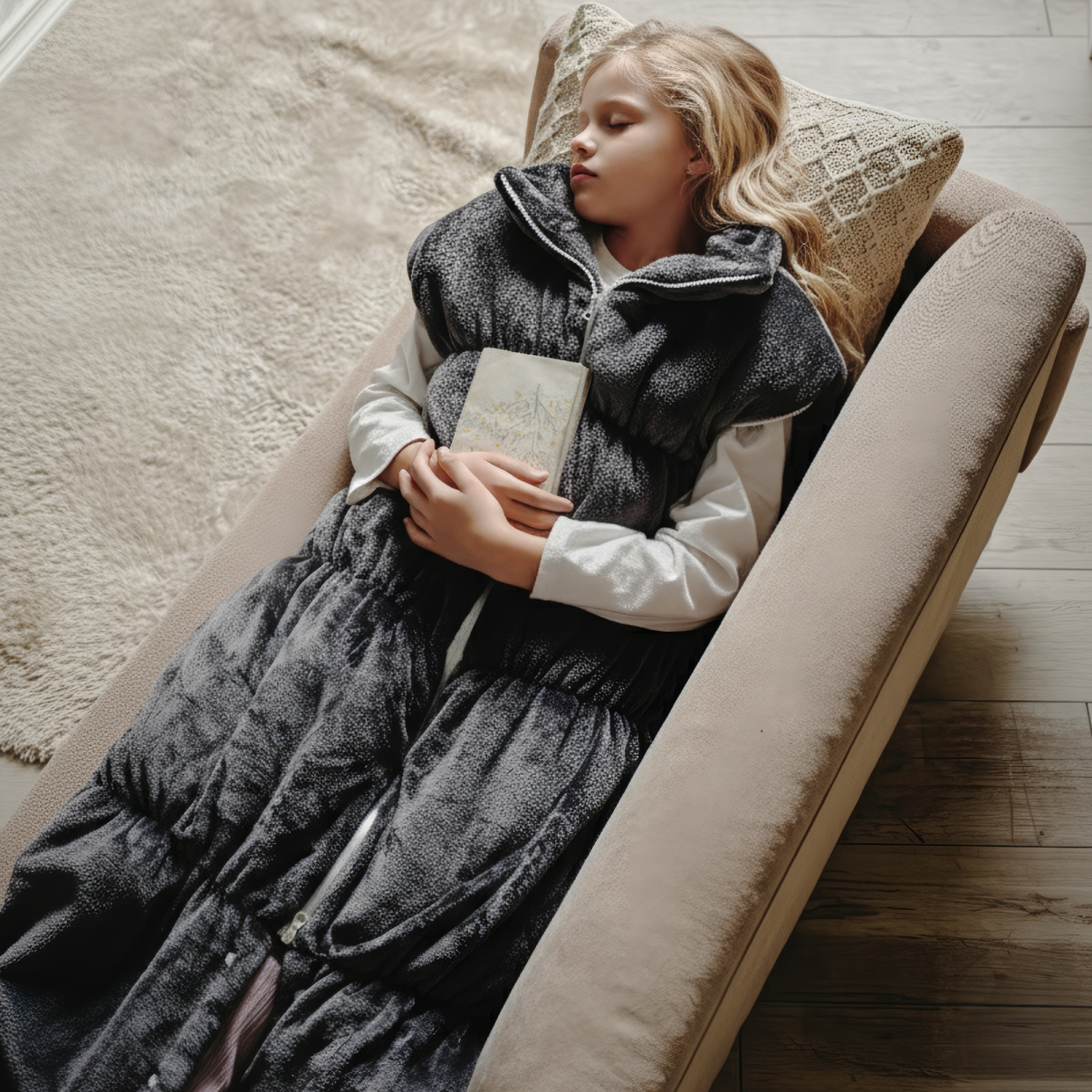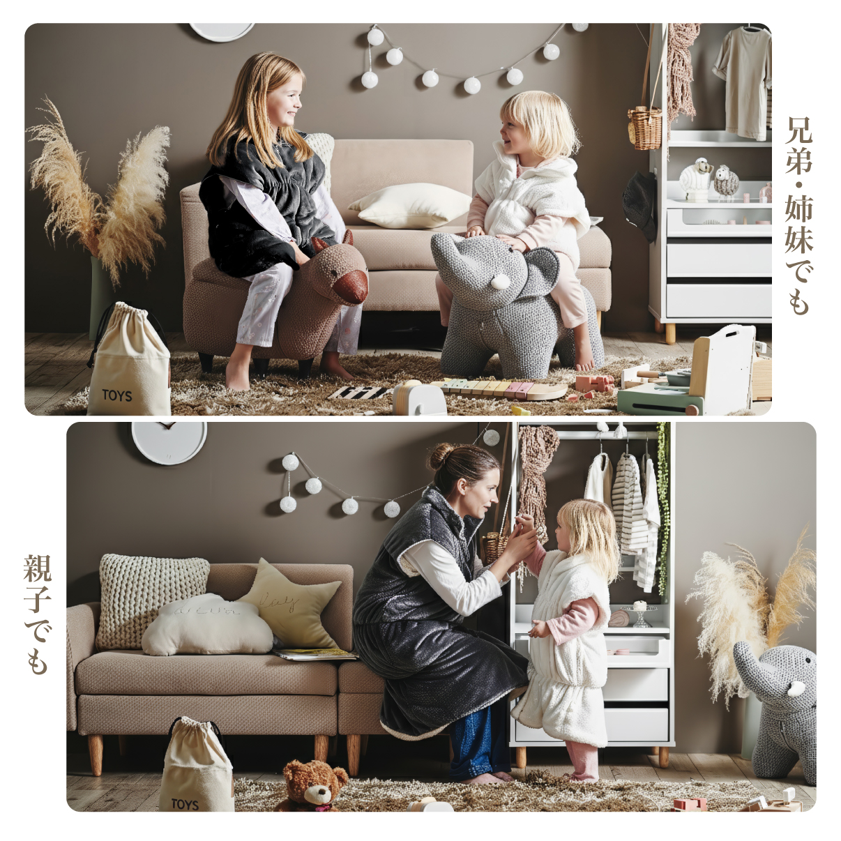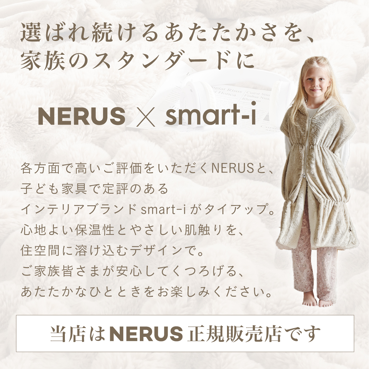 | 【NERUS×smart-i】吸湿・発熱 4way子供の着る毛布 Manon Kids(マノンキッズ) 選ばれ続けるあたたかさを、家族のスタンダードに 各方面で高いご評価をいただくNERUSと、 子ども家具で定評のあるインテリアブランド smart-i がタイアップ。 心地よい保温性とやさしい肌触りを、住空間に溶け込むデザインで。 ご家族皆様が安心してくつろげる、あたたかなひとときをお楽しみください。 ■冬のパチッを防ぐ静電気防止加工済み 乾燥が気になる季節に嬉しい、静電気加工済み。 ほこりの引き寄せも軽減してくれます。 ■腕を動かしやすいノースリーブ 袖がないから、デスクワークや読書も快適に。 ■首元ぽかぽかハイネック 冷たい風から首を守り、じんわりあたためます。 ■簡単ファスナー開閉 前開きタイプで着脱が簡単。 誰でも使いやすい設計です。 ■足元までしっかり防寒 裾コードを締めれば、床からの冷気も入れません。 ■寝袋スタイルにもチェンジ 袖口を閉じると、全身をすっぽり包む寝袋スタイルに。 ■クッションとして使える たたんで入れれば、おしゃれなクッションに変身 ■手もあたたかポケット 中ふかふかのポケットで、冷えた指先もほっと一息 ■丸洗いできて清潔 洗濯機で丸ごと洗えて、毎日清潔に使えます。 ※開封時に毛が出てくることがありますが、生産時のカットで付着した浮き毛です。 ※生地の構成上、毛が抜ける事がありますが抜かないでください。 ※アレルギー等が気になる方はご購入をお控えください。 ※直射日光の当たる場所・高温多湿な場所・火気の近くでのご使用・保管は避け、風通しの良い場所でご使用ください。 ※商品の開封直後に、においが気になる場合は風通しの良い日陰でしばらく陰干ししてください。 ※湿ったまま放置するとカビの原因となりますのでご注意ください。 ※商品写真はできる限り実物の色に近づけておりますが、お使いのモニター環境、照明、製造ロット等により実際の商品と若干色味が異なる場合がございますので予めご了承ください。 ※計測方法や製造ロットによりサイズに誤差が生じる場合があります。 ※商品到着後すぐに開封し、商品に不具合等ないかご確認ください。 ※納品書・領収書は同梱いたしません。領収書はご注文履歴より発行をお願い致します。 ※デザイン、仕様、外観、価格は予告なく変更となる場合があります。 | |