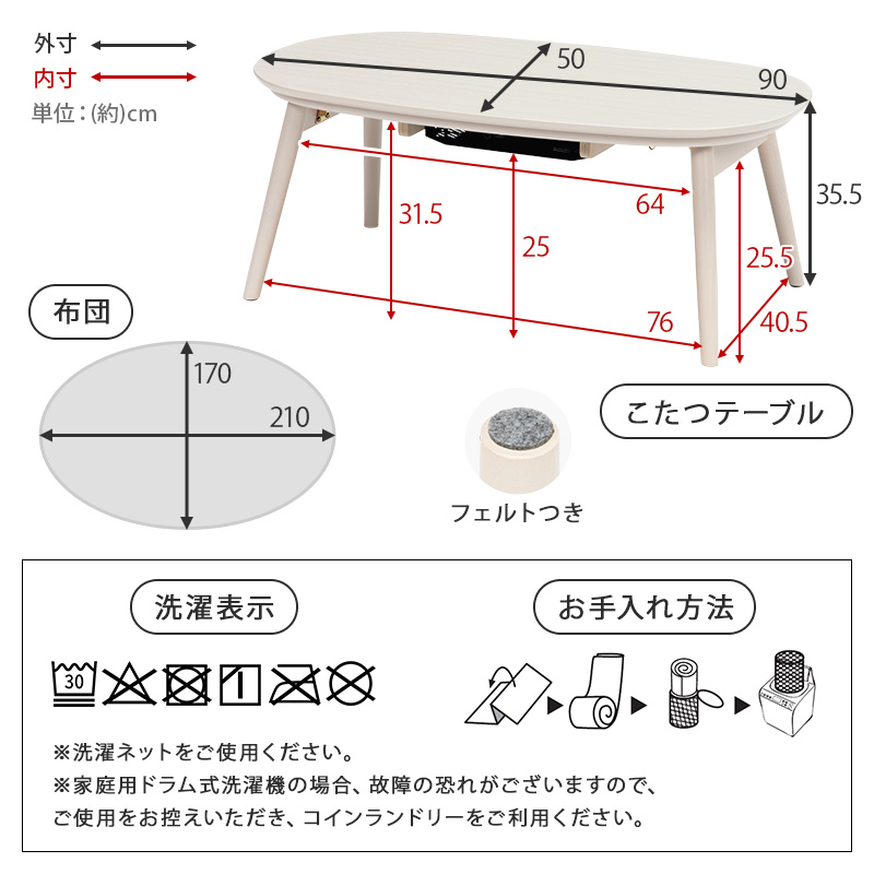 サイズ | こたつ:約 W90 x D50 x H35.5cm 掛布団:約 W210 x D170cm |