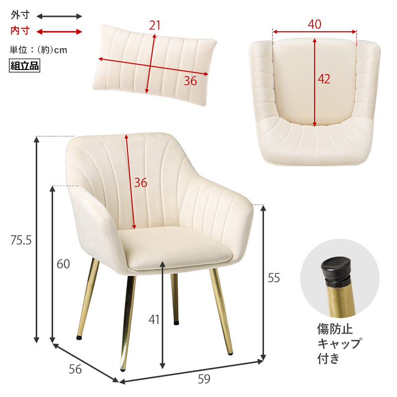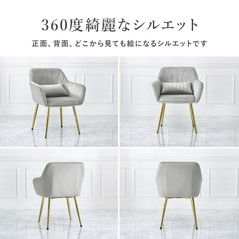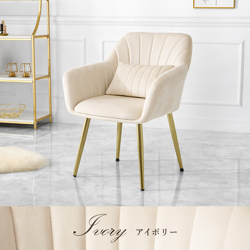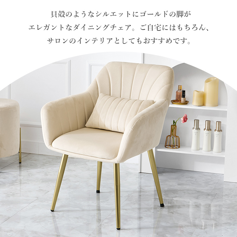 ダイニングチェア 1脚 LC-4769 貝殻のようなデザインの座面にゴールドの脚がエレガントなインテリアチェア。チェアとおそろいの可愛いクッション付き ■ベロア風生地 光沢感のある、なめらかな触り心地のベロア風生地。光の当たり方や角度によって様々な見え方が楽しめます。 ■ゴールドの脚 上品な艶のあるゴールド。テカリを抑えた質感のためフローリングにも馴染みやすくなっています。 ■たっぷりの座面・程よい柔らかさ 余裕のある広さのため、ゆったりと腰掛けられます。座面・背面ともに体全体を優しく包み込む、ほどよい弾力。長時間座っても疲れにくい座り心地です。 ■おそろいのクッション チェアとおそろいの可愛いクッション付き。ふかふかの感触で、心地よいリラックスタイムを ■脚先にはアジャスターつき 後ろ脚には高さを調節できるアジャスター付き。ガタツキを抑え、床が傷つくのも防ぎます。 ■やや低めの座面高 小柄な人でも立ち座りしやすい、やや低めの座面高。姿勢をきれいに保ちやすい、かかとがつく高さです。 ※この商品はお客様組み立て商品となります。 ※若干の個体差によって、表記サイズと完成形のサイズに多少の誤差が生じる場合がございます。 ※画面上のカラーはご使用ブラウザやモニターの設定により、実物とは若干異なる場合がございます。 | |
